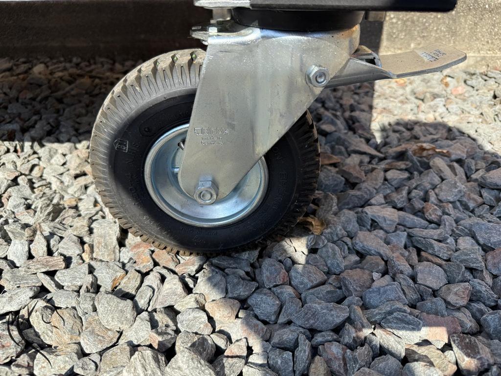 - Uitgerust met 4 grote luchtbanden met rem (Ø225mm), 4 met zwenkwielen, waarvan 2 met rem (incl. lier oog)