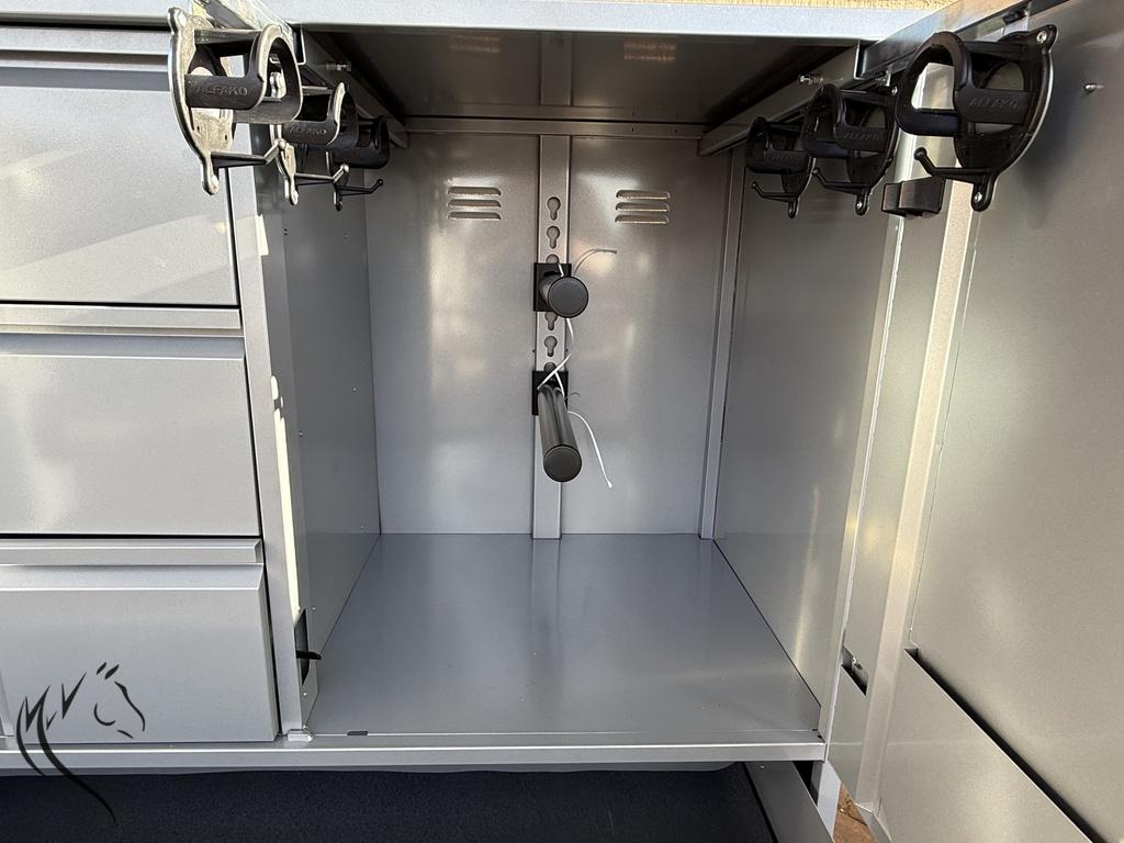 - 1 langwerpige, horizontale lade voor het opbergen van dekens en zadeldekjes
