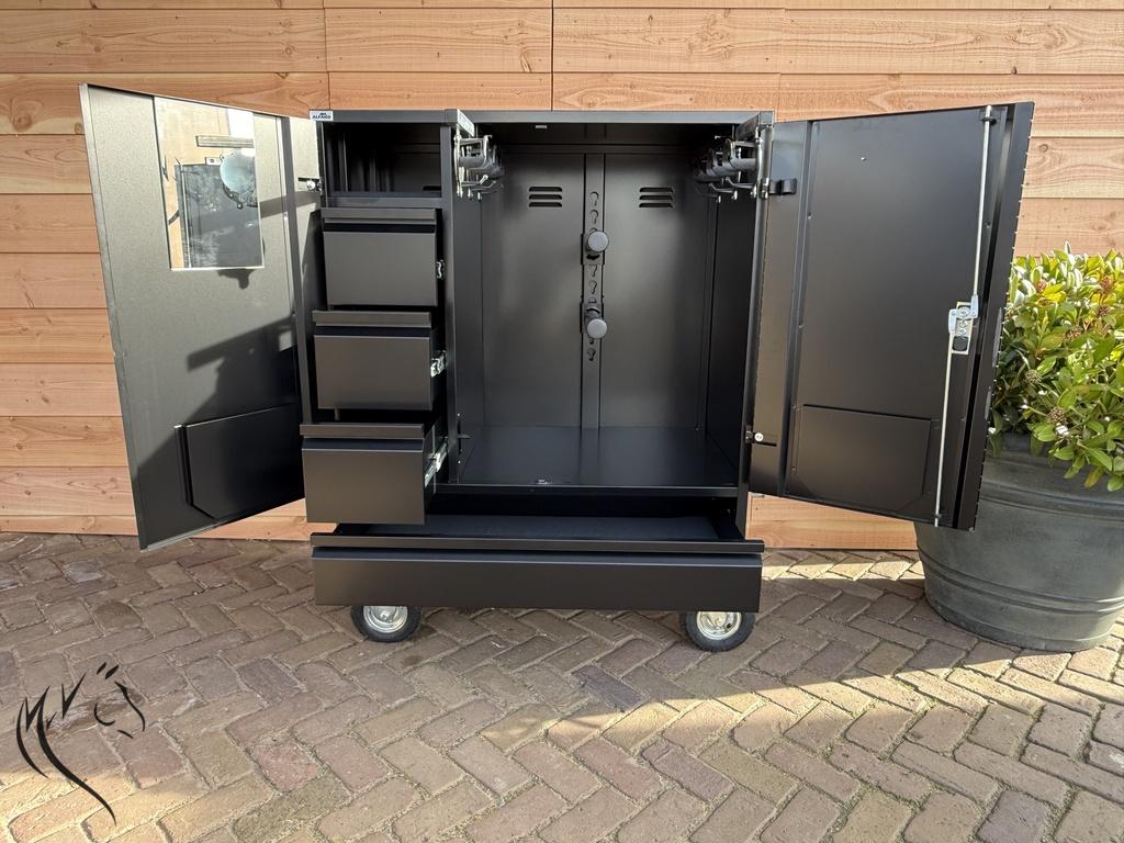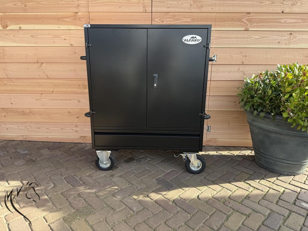 - Heeft 2 grote afsluitbare deuren (sleutels aanwezig)