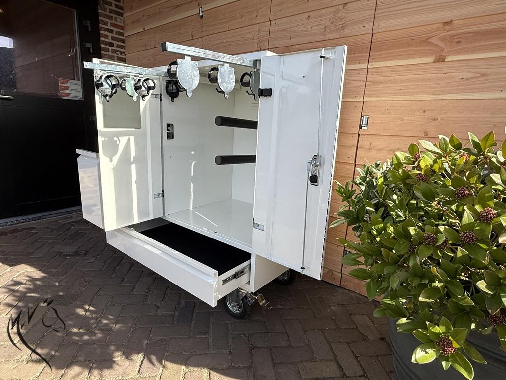 MVV concourskasten.NL verkoopt zadelkasten, stalkasten en wedstrijdkasten die verrijdbaar zijn in diverse modellen groot en klein, luxe tot zeer luxe. Voor meerdere takken van de paardensport kunt u bij MVV concourskasten.NL terecht. Wij leveren aan paardenmensen uit de Dressuursport, Springsport, Rensport, Mensport, Western en Eventing. Een concourskast is handig, mooi en ideaal voor meerdaagse wedstrijden om uw spullen in op te slaan en te vervoeren.