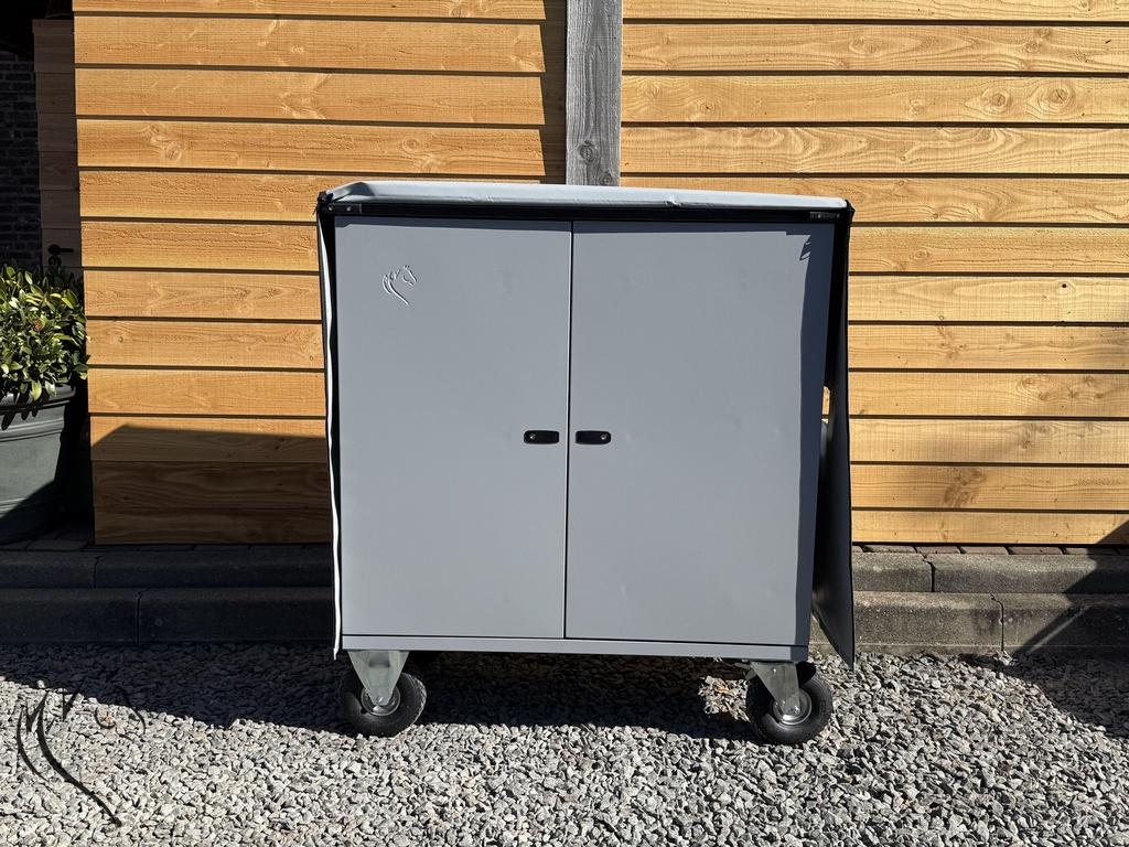 - Heeft dubbele afsluitbare deuren (sleutels aanwezig)