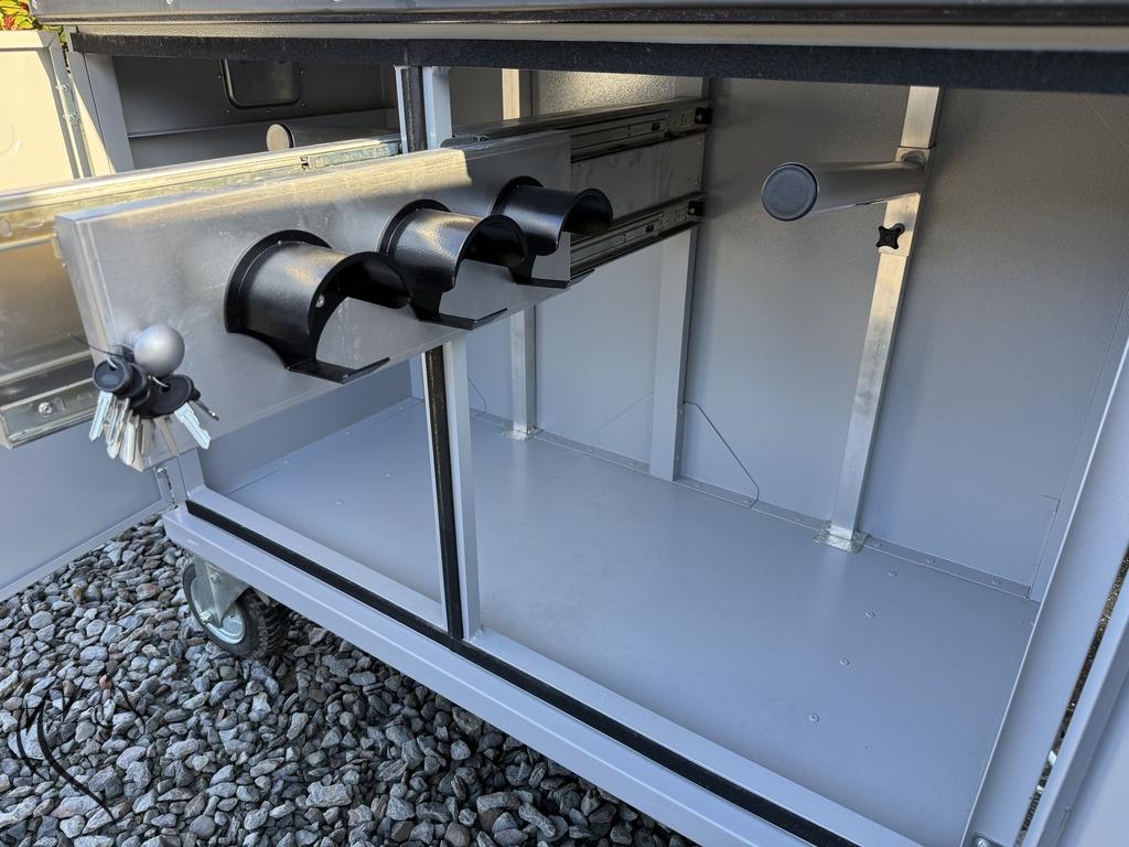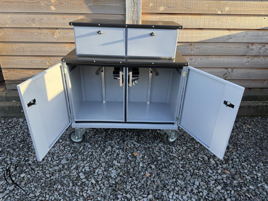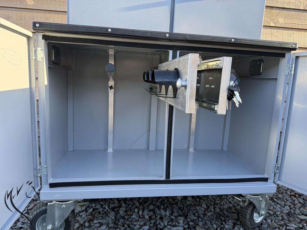 - Heeft dubbele afsluitbare deuren (sleutels aanwezig)