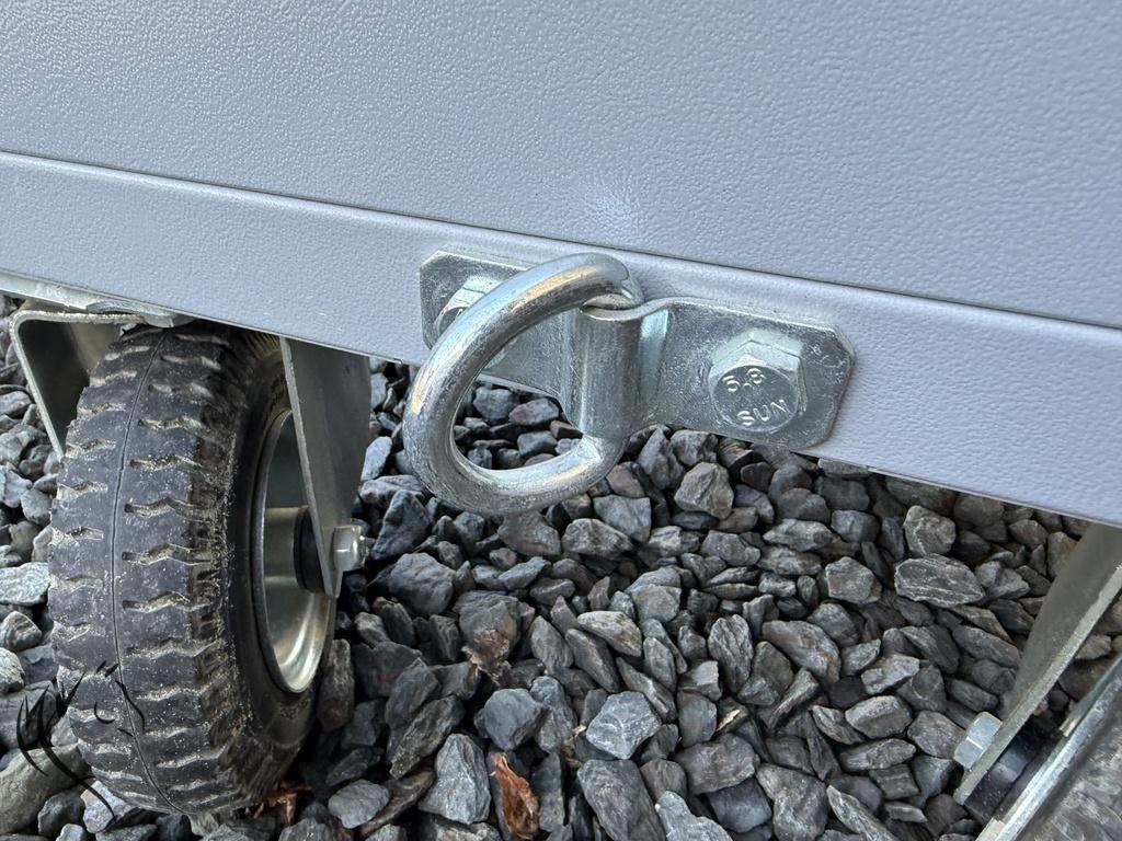 - Uitgerust met 4 grote luchtbanden met rem (Ø225mm), 4 met zwenkwielen, waarvan 2 met rem (incl. lier oog)