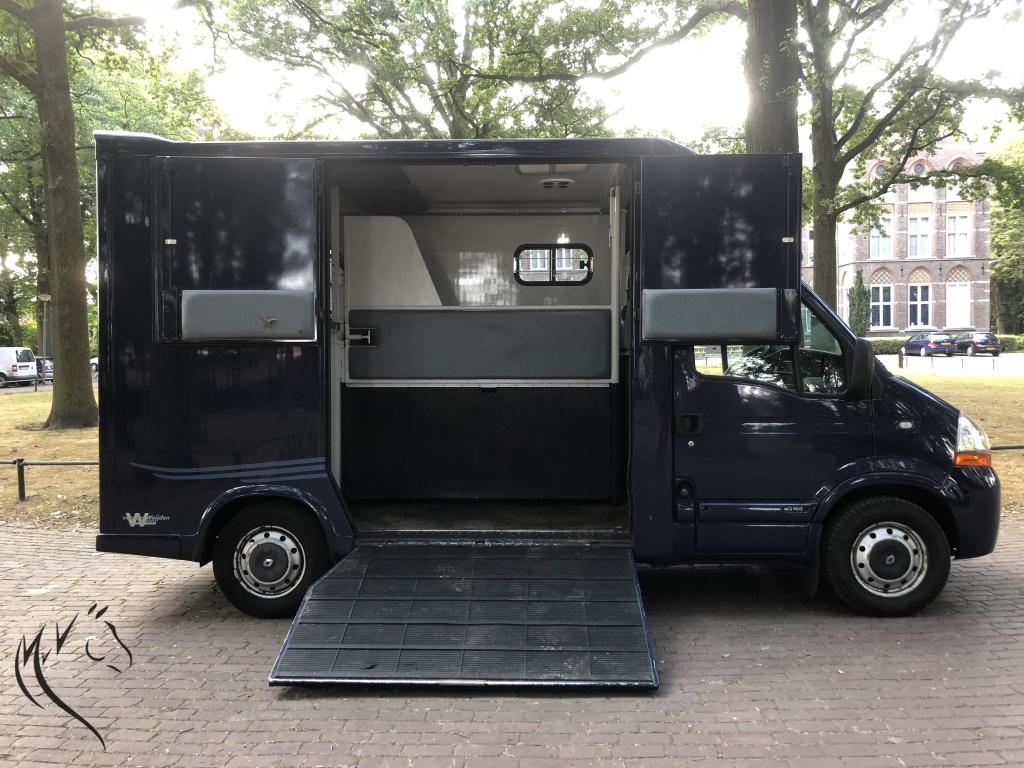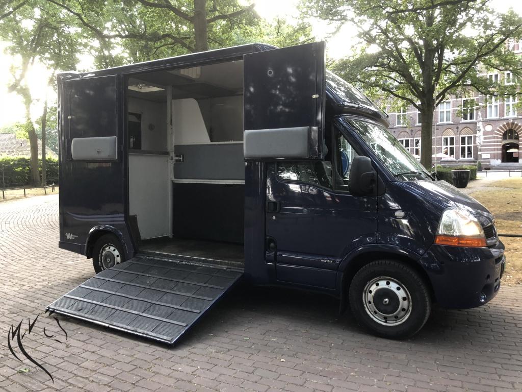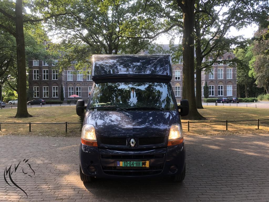 Super leuke en sterke MTM paardenwagen uit 2005 te koop. Deze Renault Master heeft alles wat u nodig heeft in huis. Een goed rijdende paardenwagen met dure mtm opbouw. Lichte zijklep met bovendeuren. Wagen is voorzien van een trekhaak, treeplank, camera paarden en acteruitrij camera, cruisecontrol, handsfree, bediening aan het stuur, armleuning, kijkraam, dakluik, ventilatieramen, nette 3-zits cabine etc. etc. Bij de wagen leveren wij 2 sleutels en 1 reservewiel. Wij kunnen zelf tenaamstellen, dus u zou hem meteen kunnen meenemen. Voorzien van nieuwe apk. Prijs is 20.000 Euro excl. 21% btw.