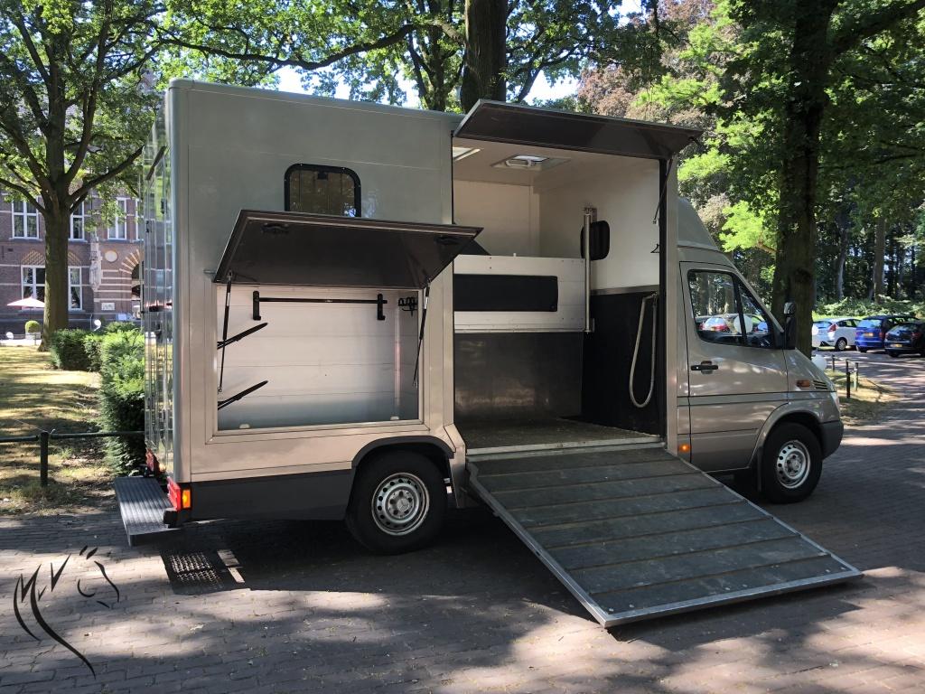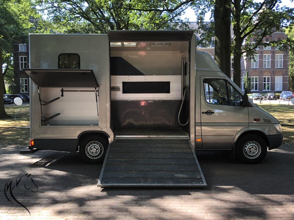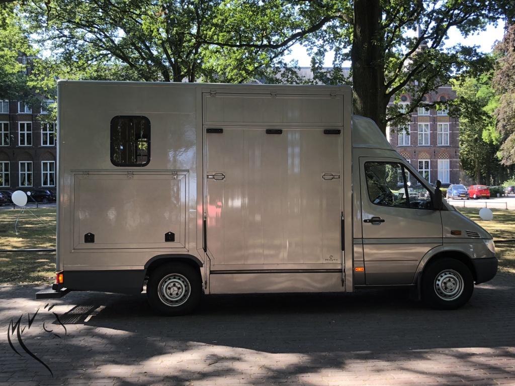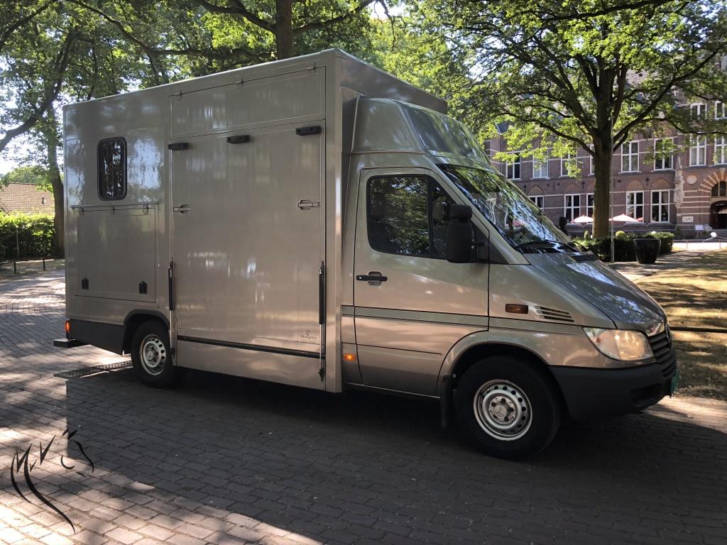 Hele leuke paardenwagen te koop. Deze sterke Mercedes Sprinter is in 2010 omgebouwd naar paardenwagen door Nuyts - Mierlo. Paardenauto is voorzien van een automaat, zijlader en handige zadelkamer aan de zijkant. Heeft camera bij de paarden, een treeplank, reservewiel en navigatie. Bijzonder mooie champagne kleur en nog super in de lak. Geen beschadigingen buiten en binnen bij de paarden. Heeft 8 jaar binnen gestaan, is goed onderhouden en heeft zeer weinig kilometers. Is nog op Belgisch kenteken, maar wordt binnenkort ingevoerd naar Nederland. Zeer nette en correcte wagen! Prijs is 19.950 Euro Marge (geen btw)