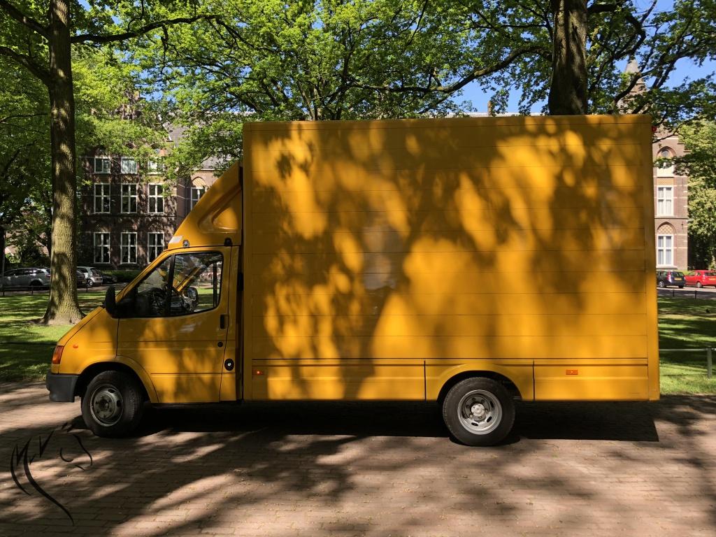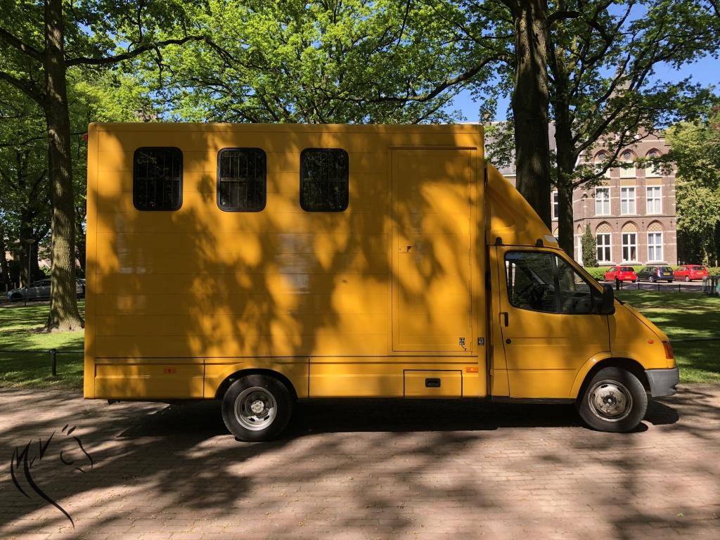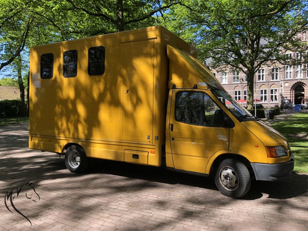 Zeer degelijke gele Ford Transit met Roelofsen Raalte opbouw uit 1999.