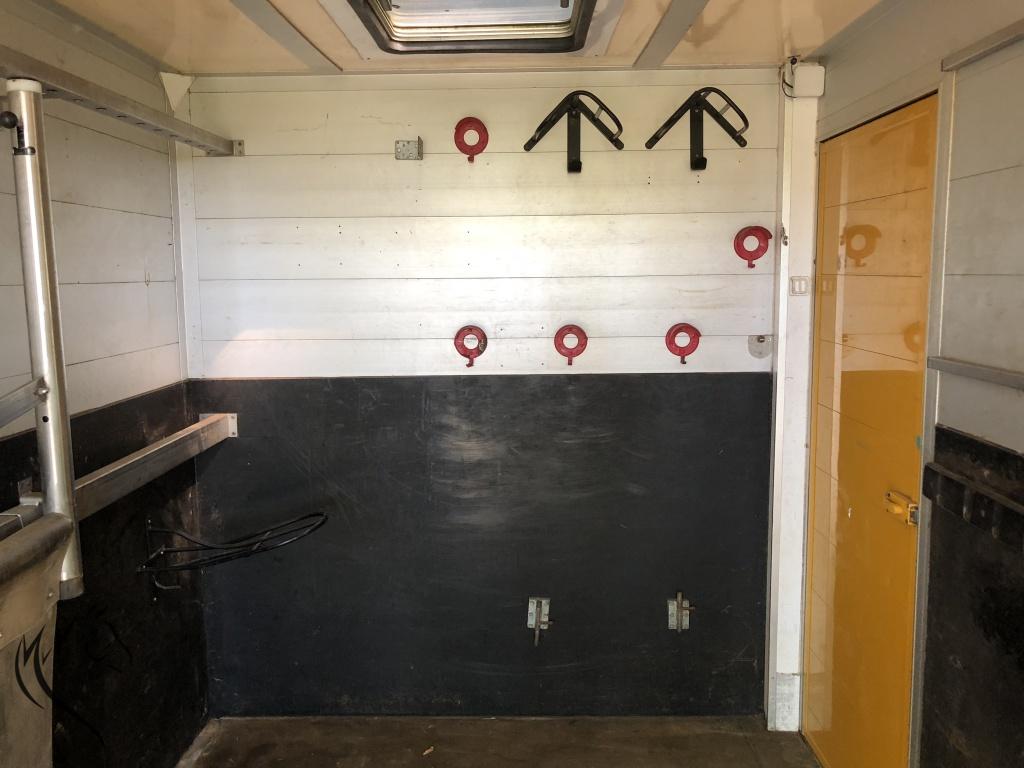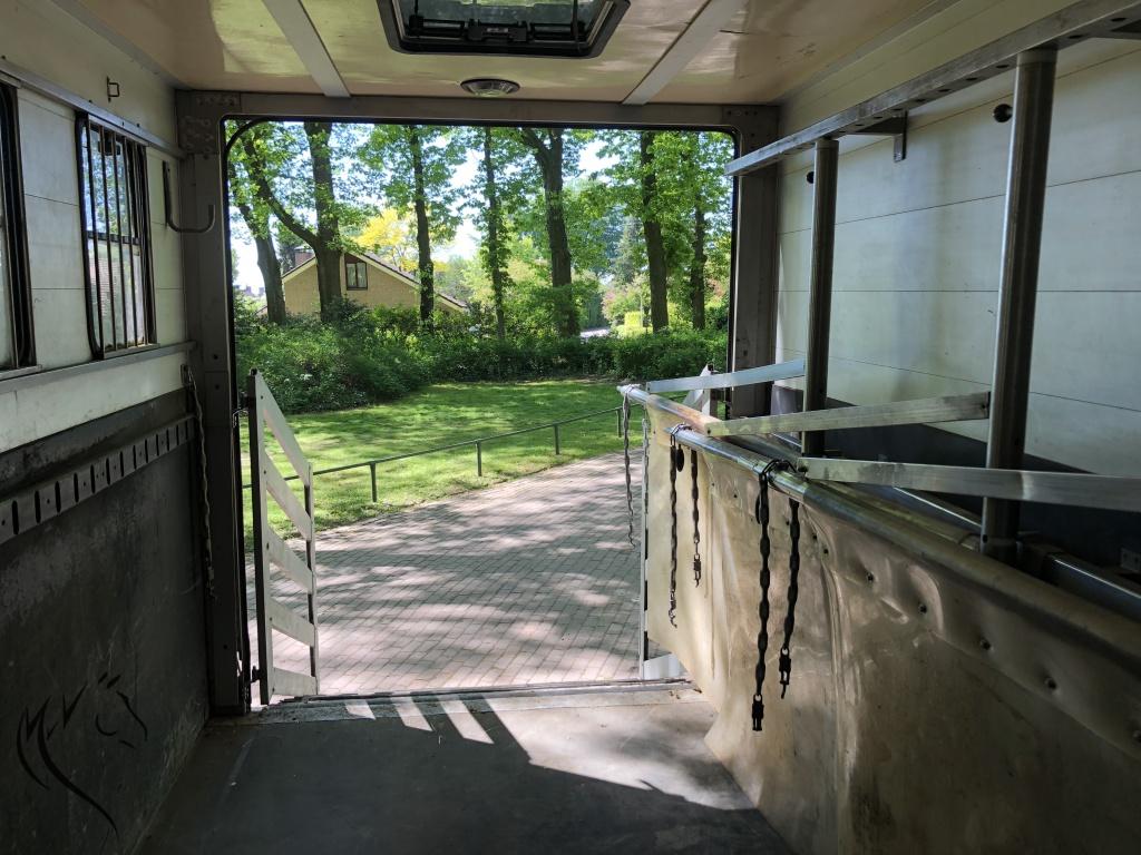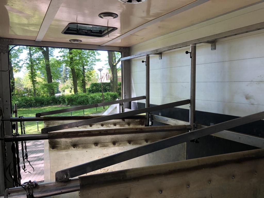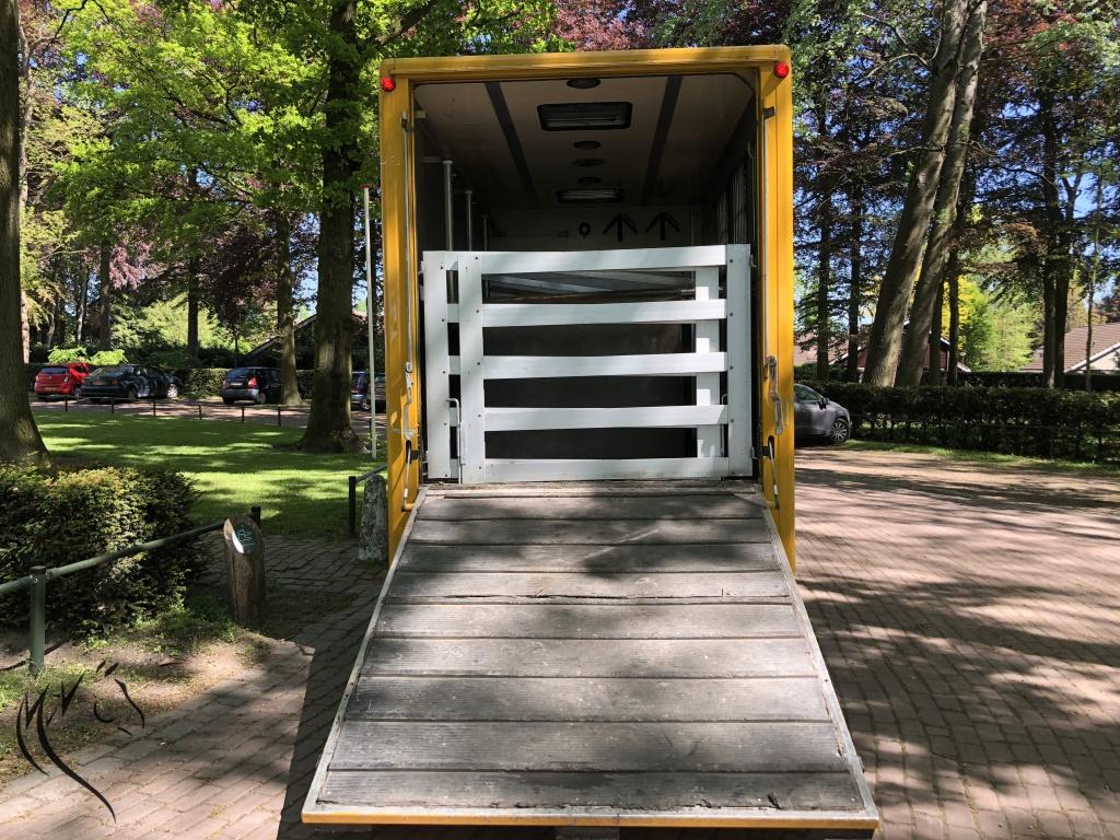 De paardenwagen is voorzien van een achterlader en is voor paardjes of pony's geschikt. In het paardengedeelte is nog ruimte voor de zadels en hoofdstellen. Gehele opbouw is geheel van aluminium en oersterk. Origineel in de fabriek gemaakt bij Roelofsen Horsetrucks in Raalte. Roelofsen die bekend staat door zijn hoogwaardige kwaliteit en afwerking. Je ziet dit terug in alle details. Voorzien van de volgende opties, o.a.: zadelruimte voorin de wagen. De viervoeters staan zijwaarts en daardoor zijn er meerdere Rvs tussenschotten aanwezig. Paardengedeelte is verder voorzien van een ventilator, dakluik, meerdere ventilatieramen en een zijdeur. Rondom hoog afgewerkt met trapbescherming. Goede bodem, voorzien van rubberen Dunlop mat met daaronder aluminium vloer.
