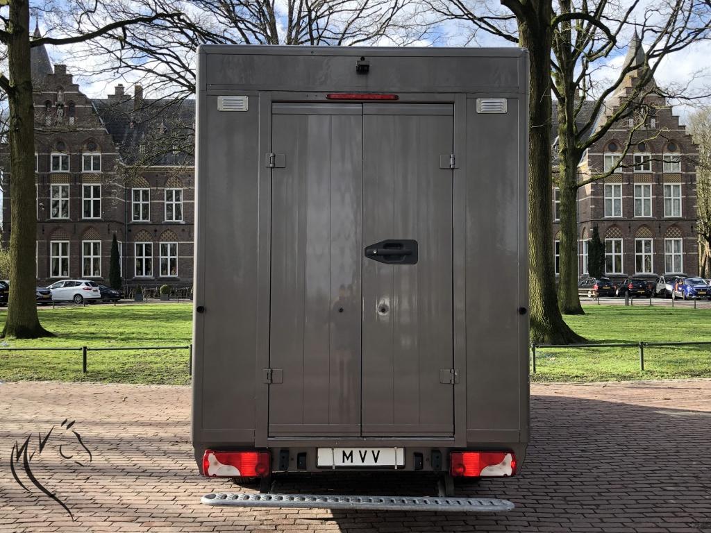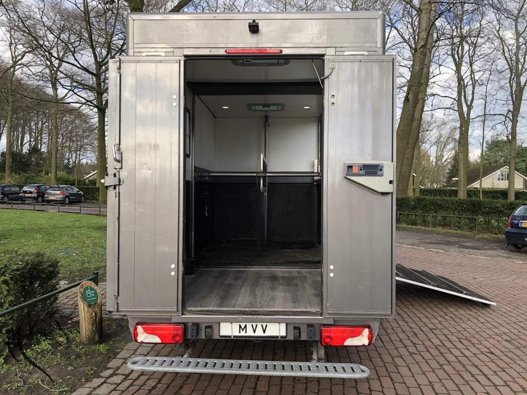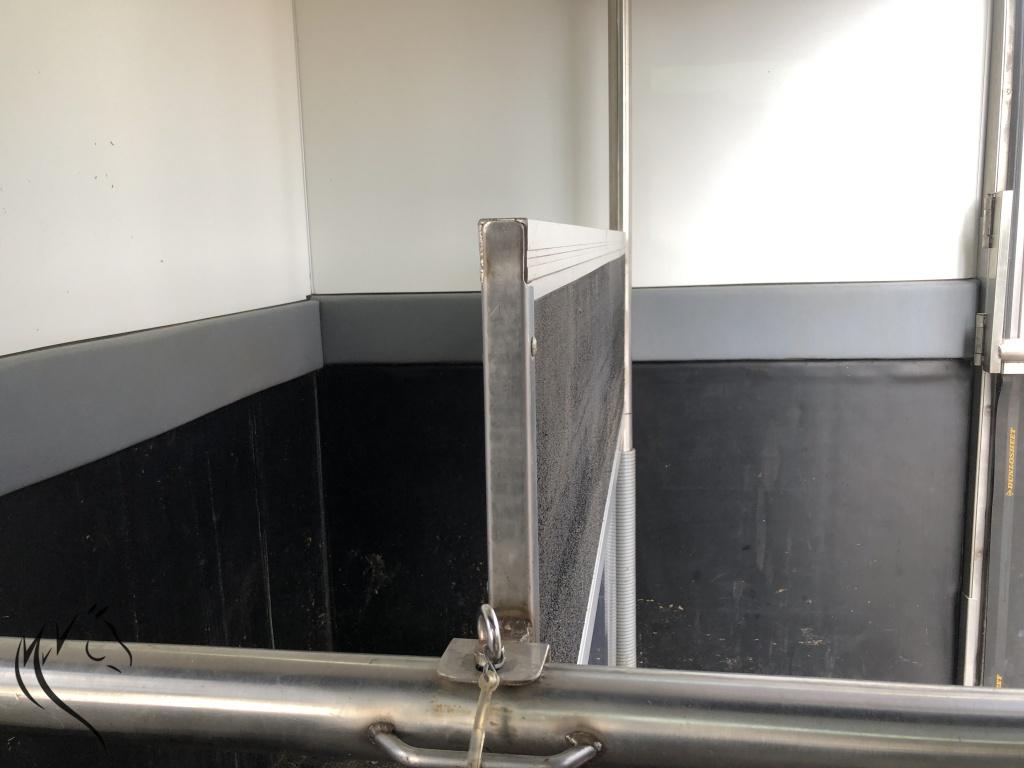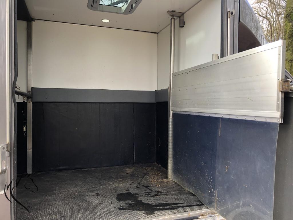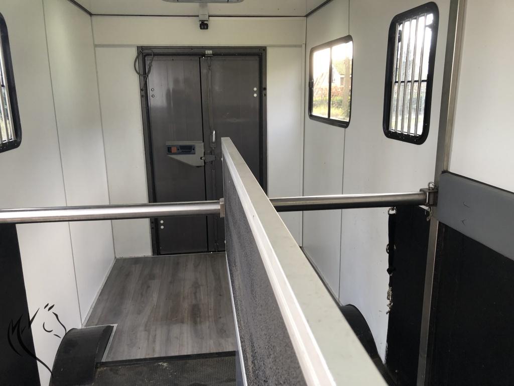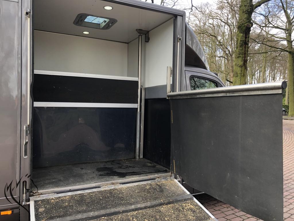 De lichte lage instap zijklep is een echte meerwaarde met daarboven 1 bovenklep, die u op concours kunt opzetten al voor de frisse lucht. De cabine ziet er zeer netjes uit en beschikt over 3 zitplaatsen, met o.a.: armsteun, bediening aan het stuur, radio, camera in paardengedeelte en achteruit rij camera, airco, cruisecontrol, elektische ramen en nog veel meer. Deze kanjer van een paardenwagen is de ideale paardenwagen voor diegene die houden van stoer en comfort in èèn.