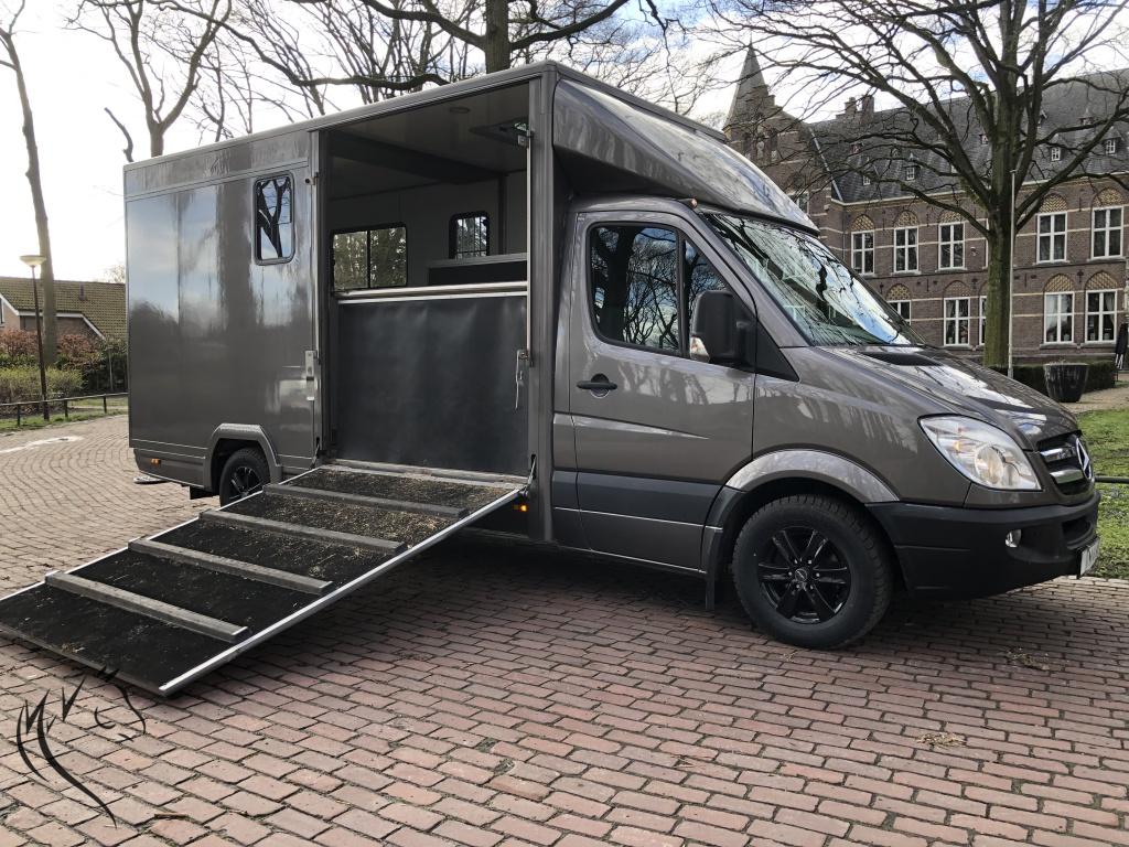 Prachtige Mercedes Sprinter automaat paardenwagen uit 2009 met een zgan JWR Roelofsen Horsetruck opbouw te koop.