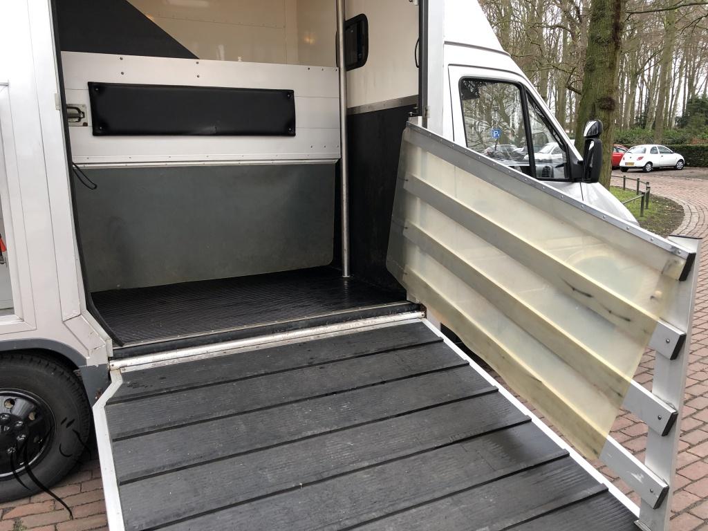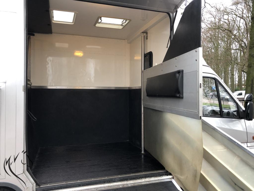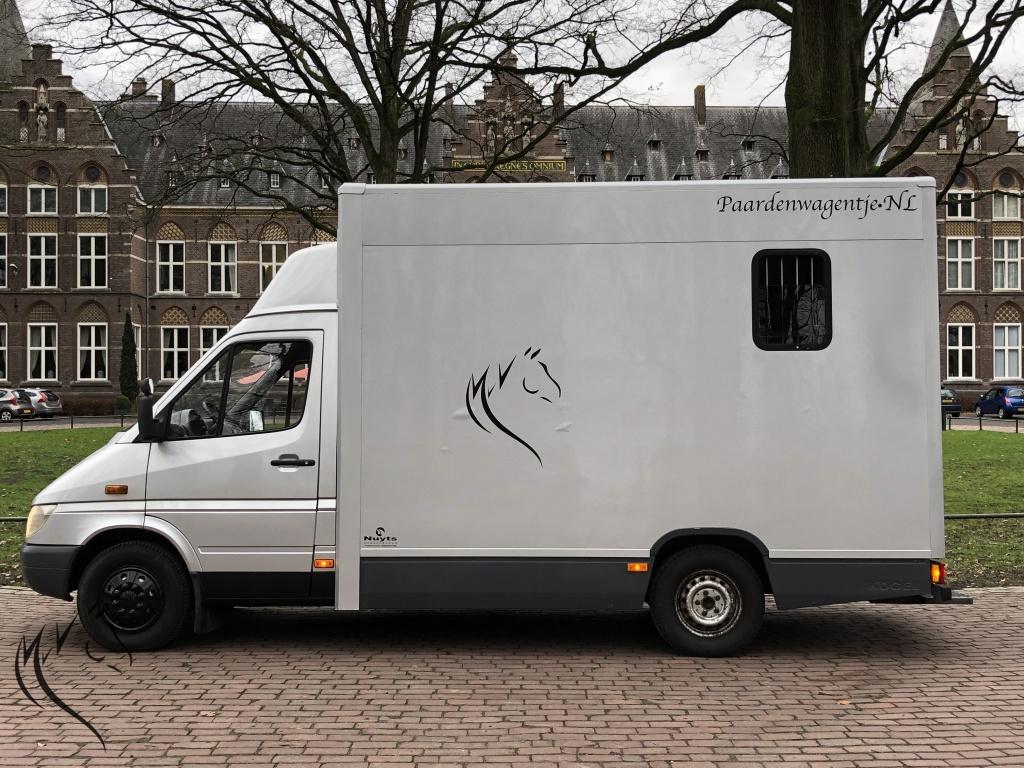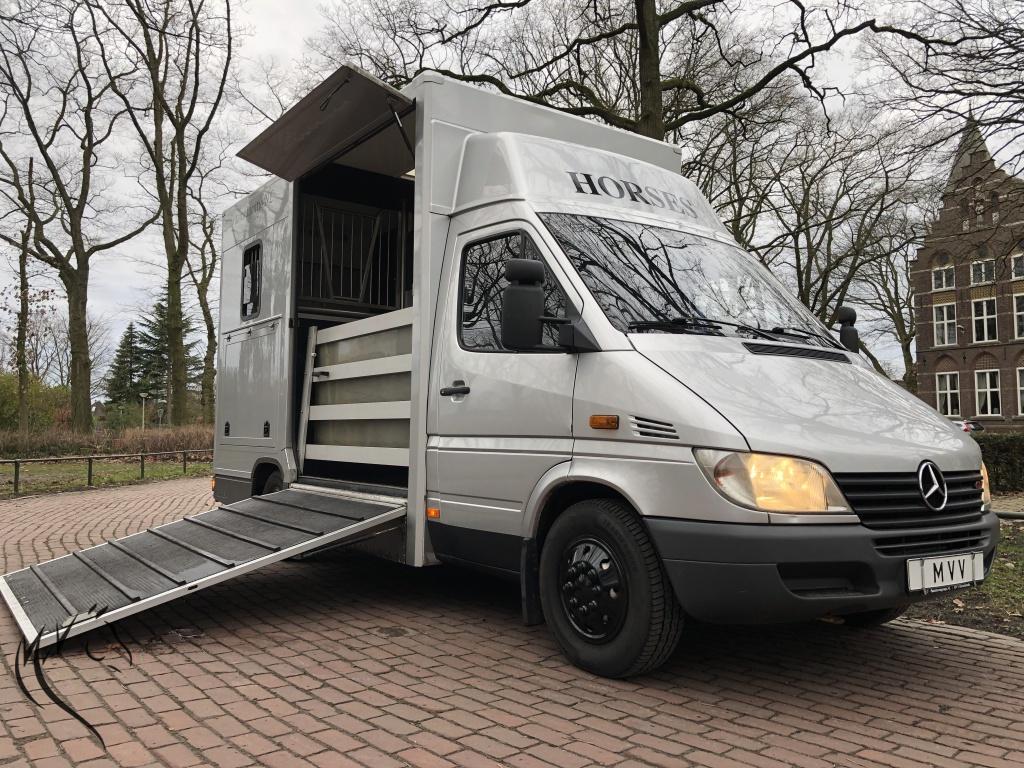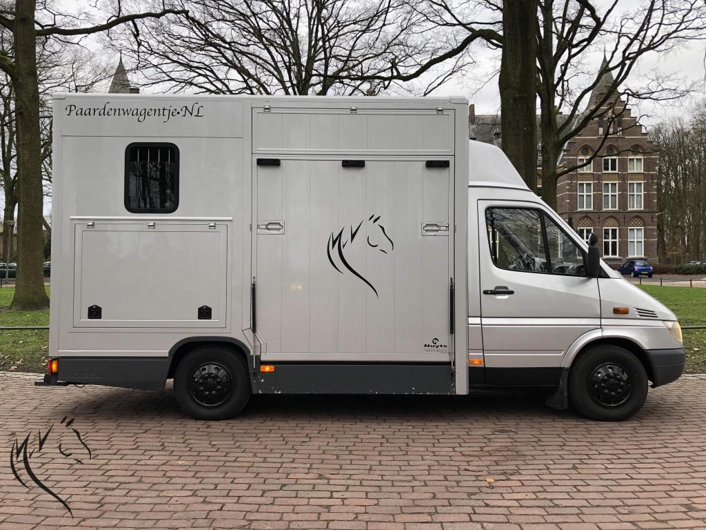 Hele leuke paardenwagen te koop. Deze sterke Mercedes Sprinter is in 2010 omgebouwd naar paardenwagen door Nuyts - Mierlo. Paardenauto is voorzien van een automaat, lichte zijlader en handige zadelkamer aan de zijkant. Wagen heeft onlangs een nieuwe apk gehad en is technisch in prima staat. Aan de buitenkant enkele gebruikerssporen, maar kan in overleg hersteld worden. Paardengedeelte is super opgebouwd met vaste borstwand en wegklapbare weefrekken. Verder o.a een watertank, afspuitsysteem, rvs zakkende ramen met tralies, dakluik, hoge kast om uw rijjas en andere jassen in op te hangen. Een handige zadelkamer aan de buitenzijde met 2 zadelsteunen en meerdere hoofdstelhaken. Ideale wagen voor de hobbyruiter of voor de professional. Starten en rijden vrooooooommm.