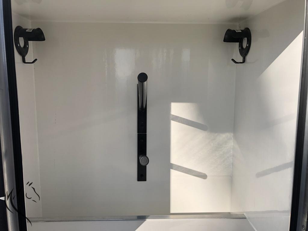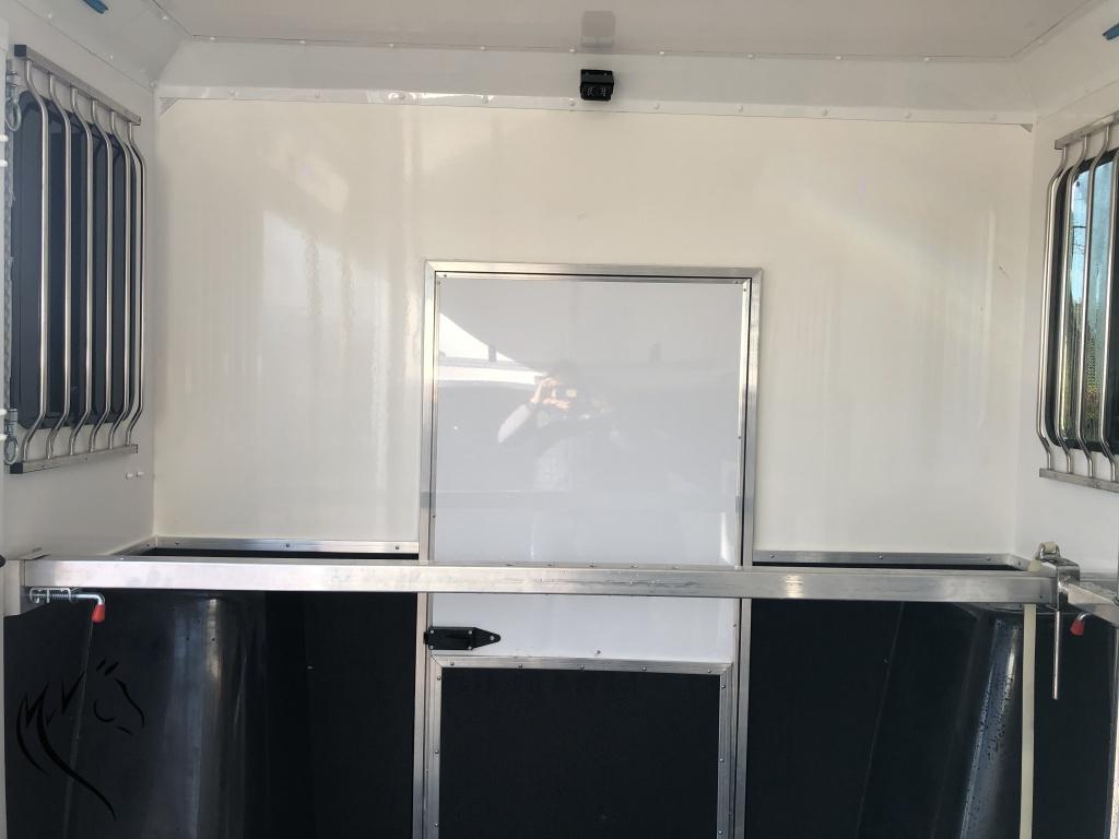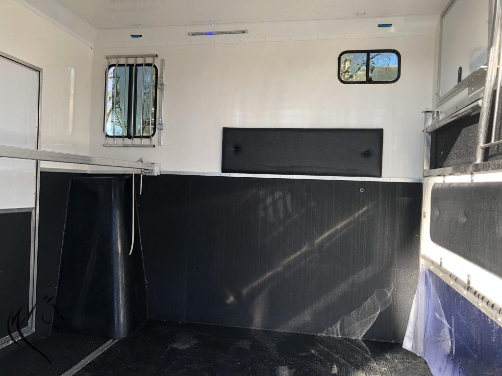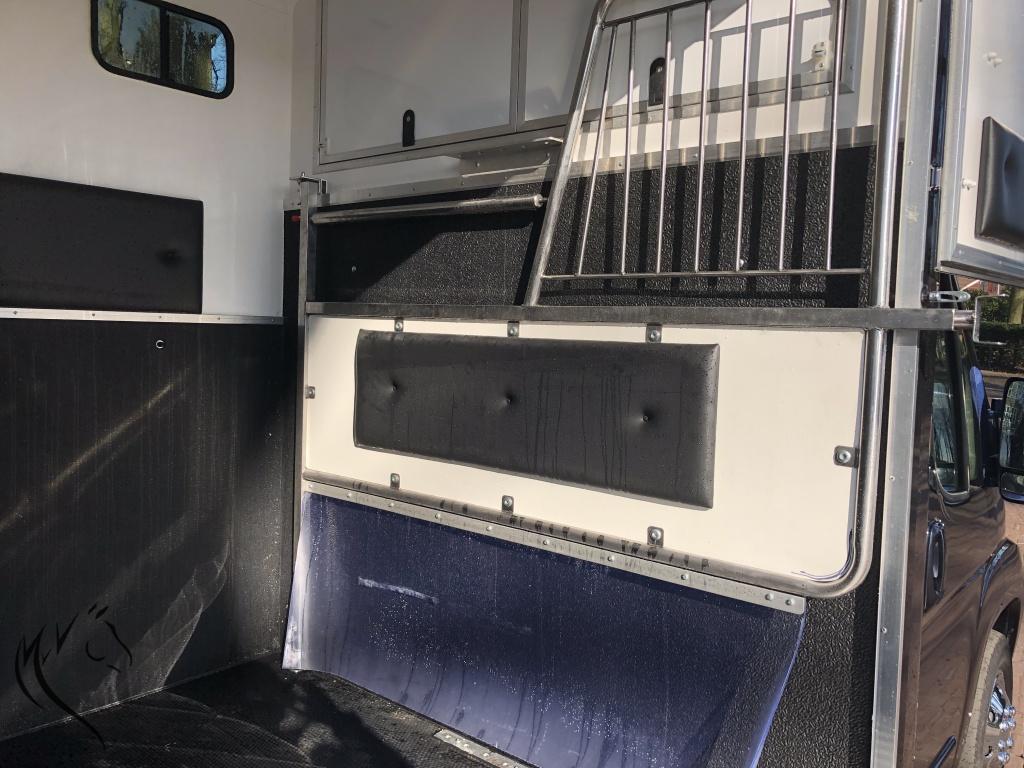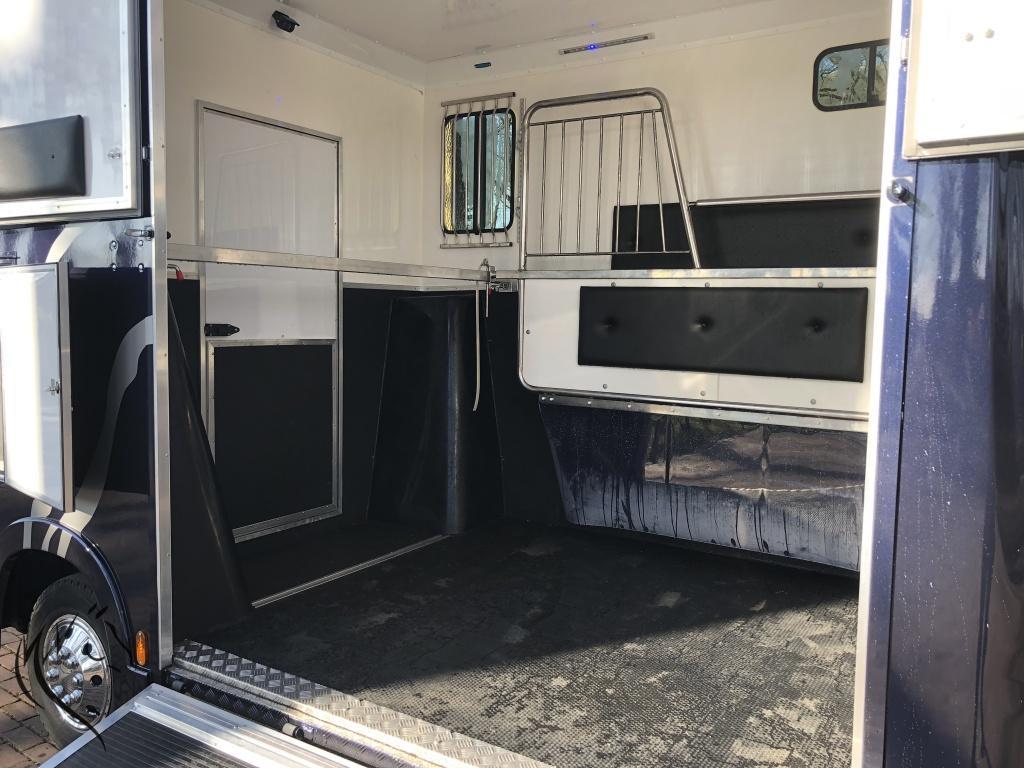 De lichte lage instap zijklep is een echte meerwaarde met daarboven 2 openslaande deuren, die u op concours kunt opzetten al voor de frisse lucht. Verder zien we nog een grote opbergruimte boven de cabine, trekhaak en treeplank. De cabine ziet er zeer netjes uit en beschikt over 3 zitplaatsen, met o.a.: armsteun, bediening aan het stuur, radio, camera in paardengedeelte en achteruit rij camera, airco, cruisecontrol, elektische ramen en nog veel meer. Deze kanjer van een paardenwagen met 170pk is de ideale paardenwagen voor diegene die houden van comfort en superdeluxe in èèn.