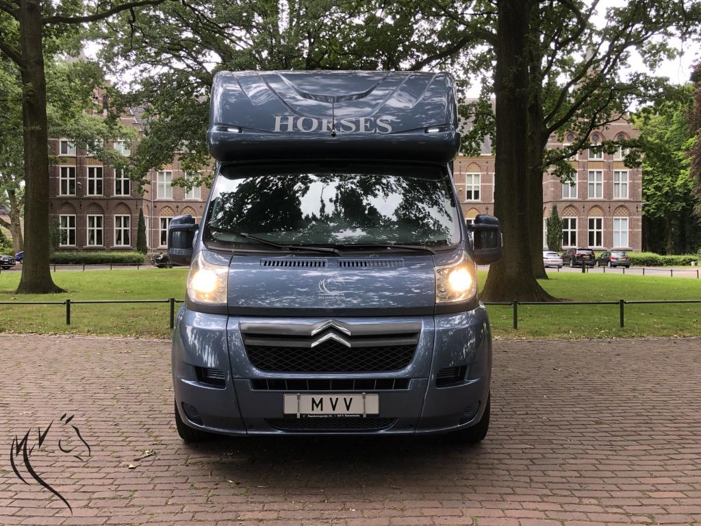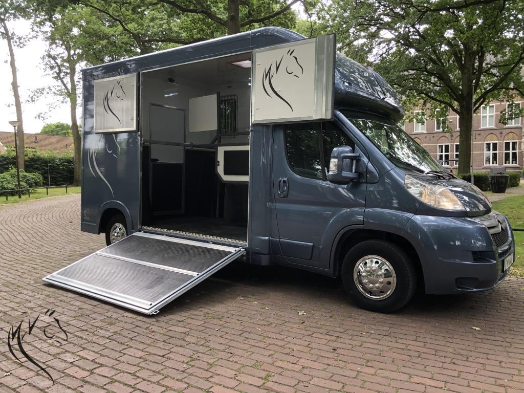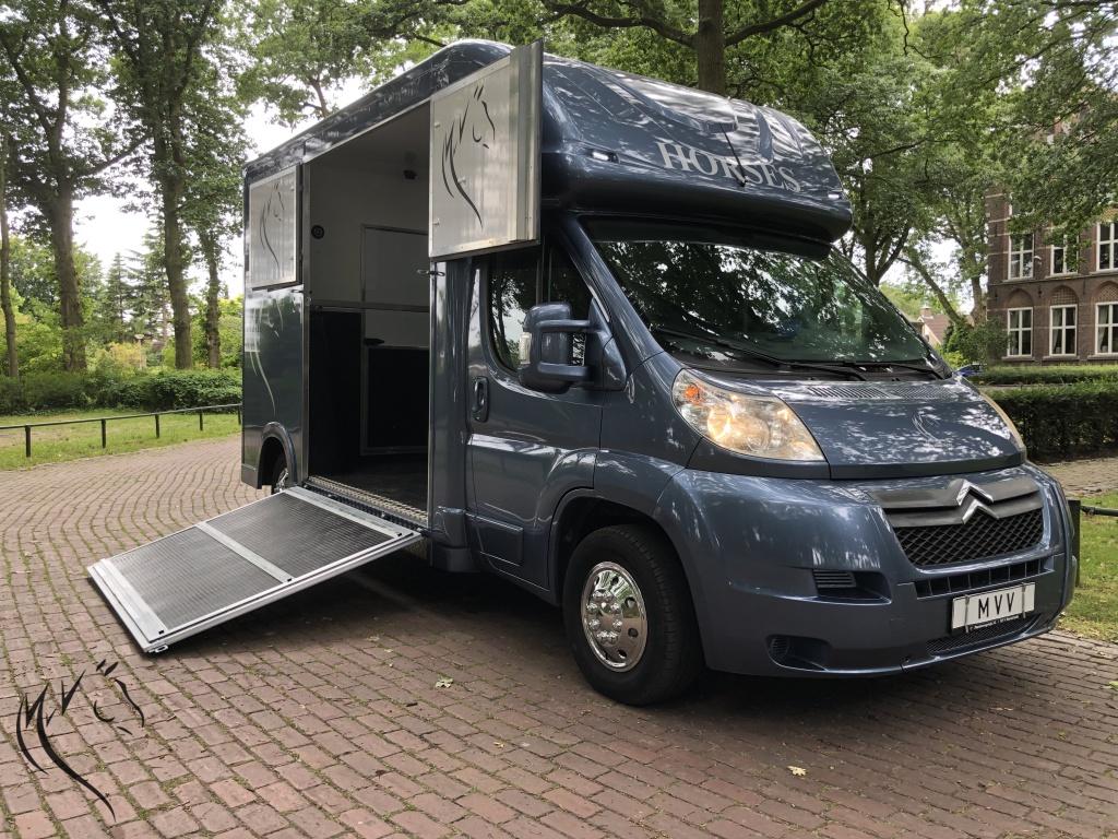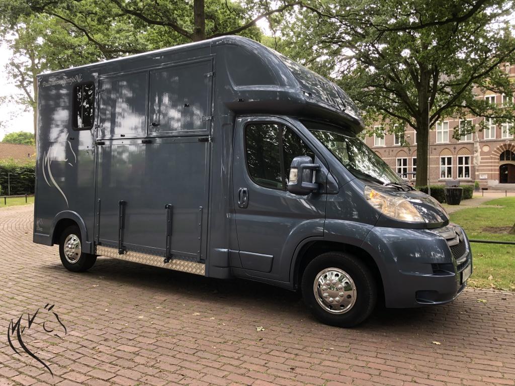 Prachtige Lichtblauwe Citroën Jumper paardenwagen uit 2009 met een nieuwe Horseboxes opbouw te koop.