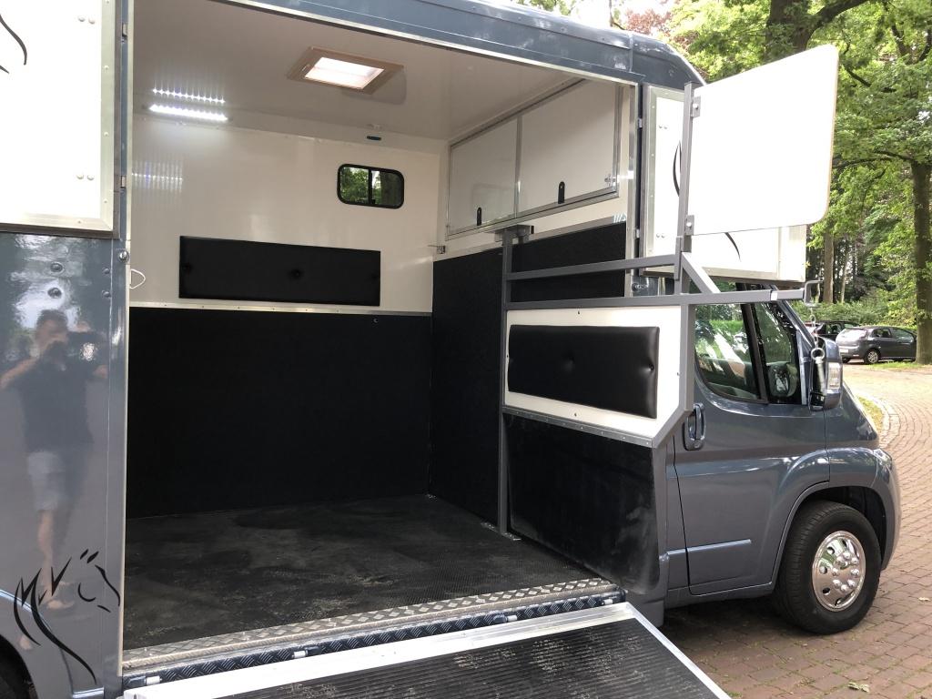 Horseboxes is een Engels merk, welke bekend staat om zijn mooie uiterlijk met kwaliteit als standaardoptie. De nette afwerking en jarenlange kennis zien we terug in de opbouw. Veel ruimte en mooie materialen zijn er verwerkt, o.a. Aluminium constructies, ledverlichting binnen en buiten de wagen, 1 stuk rubbervloer paardengedeelte, garderobekasten, gestoffeerde zitbanken groom area, etc.