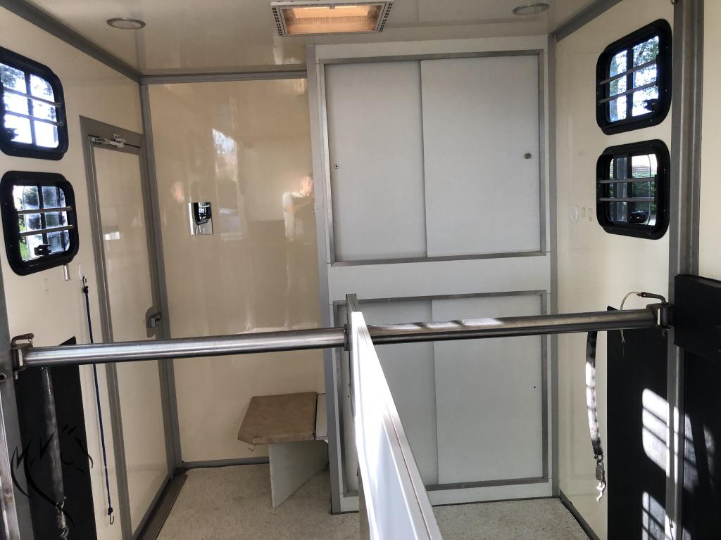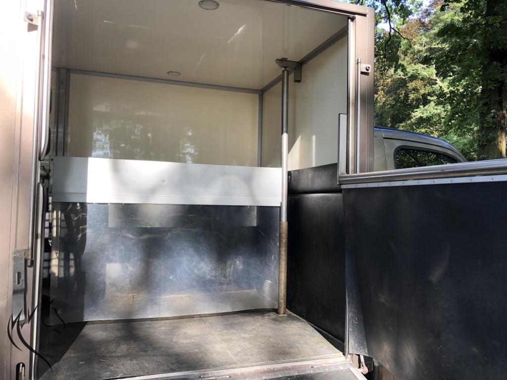 De paardenbak is van het welbekende merk JWR Roelofsen Horsetrucks uit Ede. Je ziet de klasse waarmee er gebouwd is. Het paardengedeelte is voorzien van de volgende opties, o.a.: aparte zadelkamer aan de achterkant, ruim paardengedeelte ook voor grote paarden en lichte lange zij klep. Paardengedeelte is minimaal 2.30m hoog en voorzien van 4 ramen, ledverlichting en dakluik. Rondom hoog afgewerkt met trapbescherming en stootkussens. Tussenschot is sterk gemaakt van Rvs en aan de voorkant een wegneembare borststang. Via de zijdeur met treeplank is een ruimte met zitbankje, spiegel en opbergkasten. De zadelkamer is zowel binnendoor als via de buitenkant bereikbaar, welke superhandig is. Bodem voorzien van rubberen mat compleet waterdicht afgewerkt.