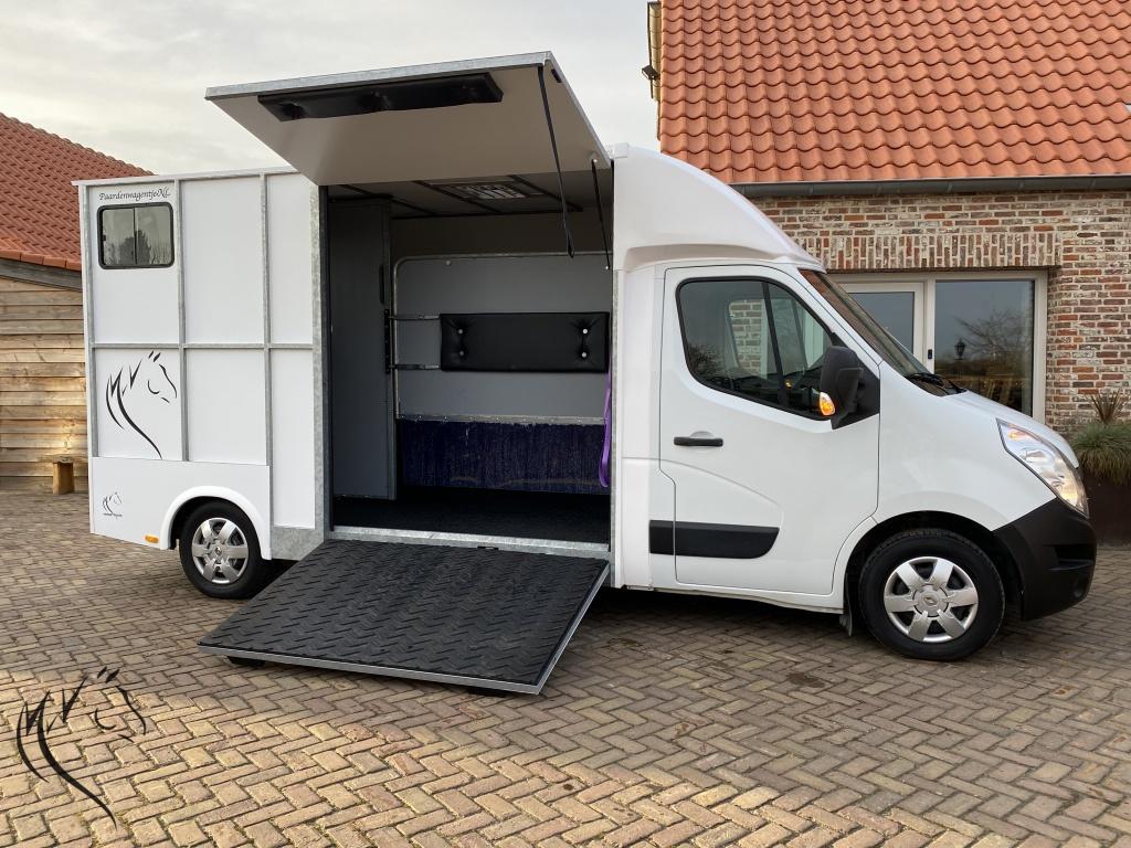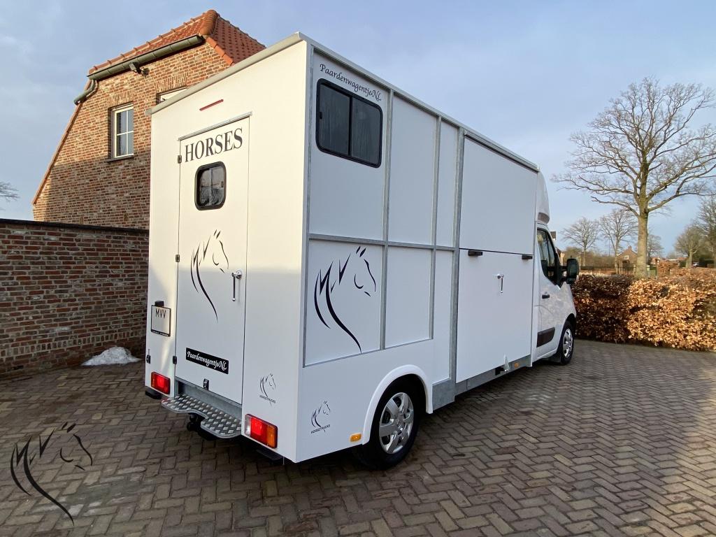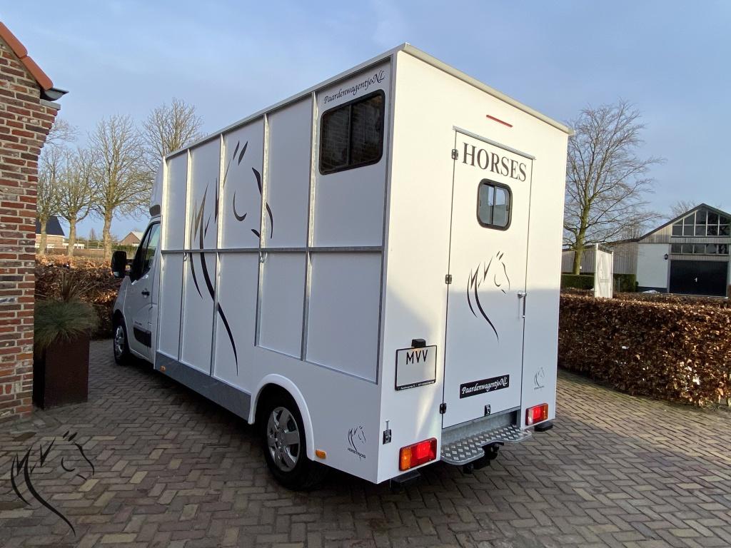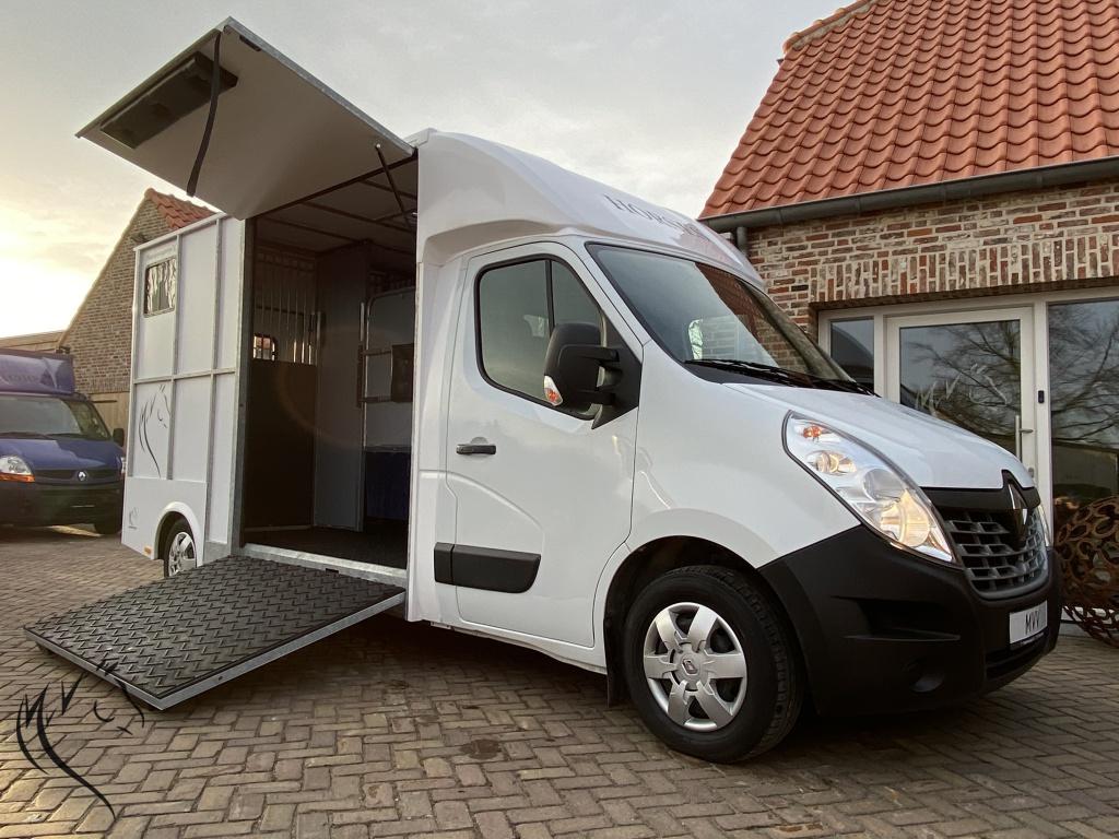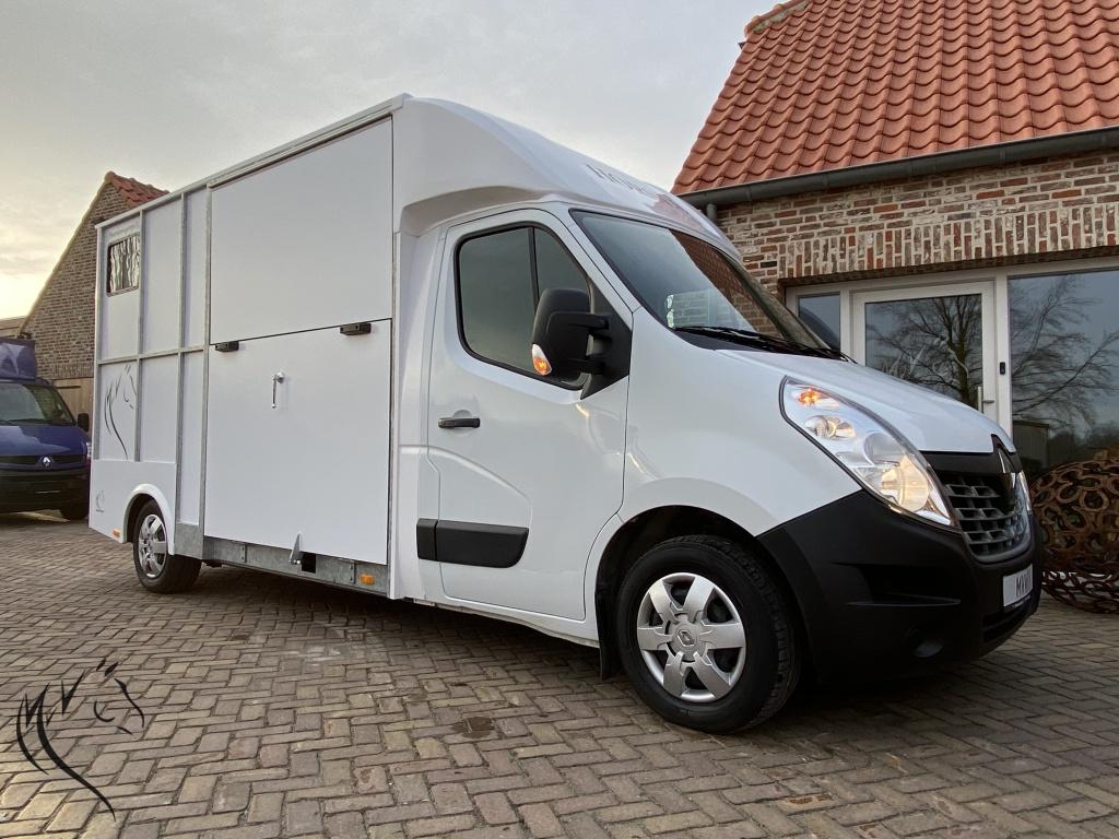 Top veilige en zeer sterke Renault Master paardenwagen met enkele cabine uit 2014 en nieuwe opbouw van 2021. De MVVHorsetruck heeft een Hengstenuitvoering, ook wel stal uitvoering genoemd. Is daarom super veilig voor het vervoer van paarden.