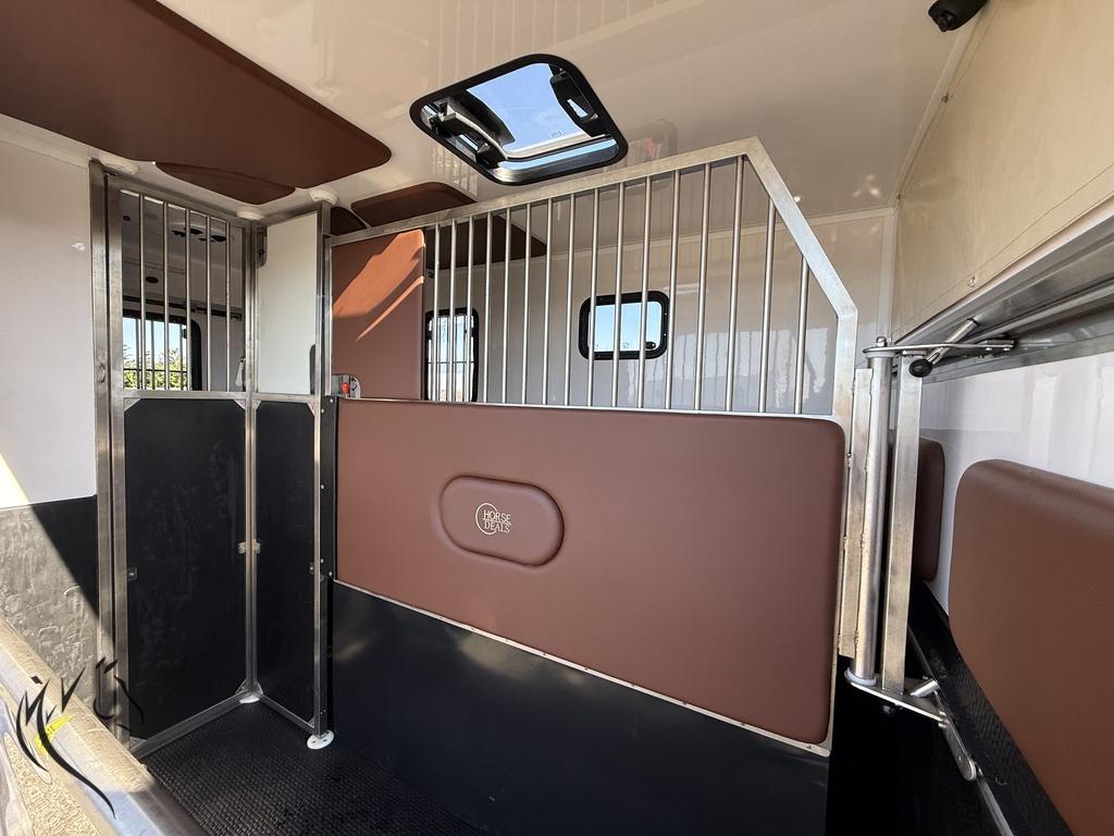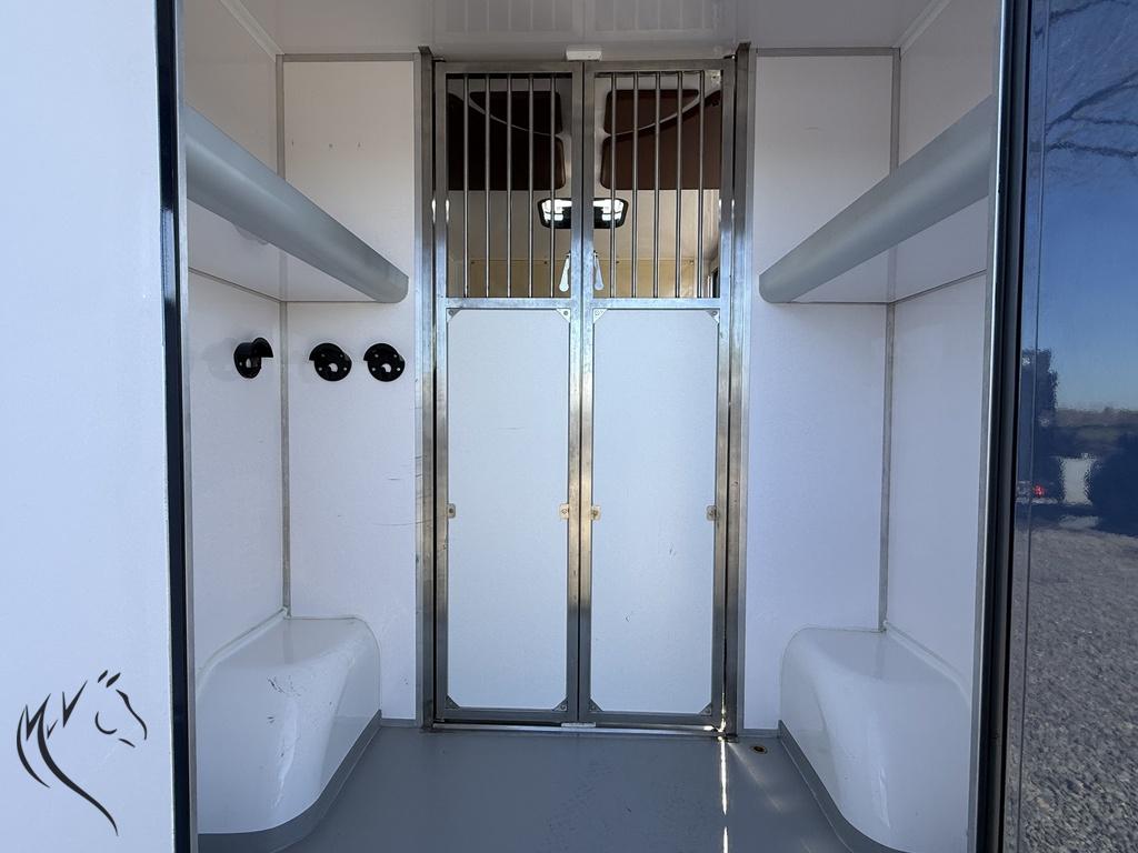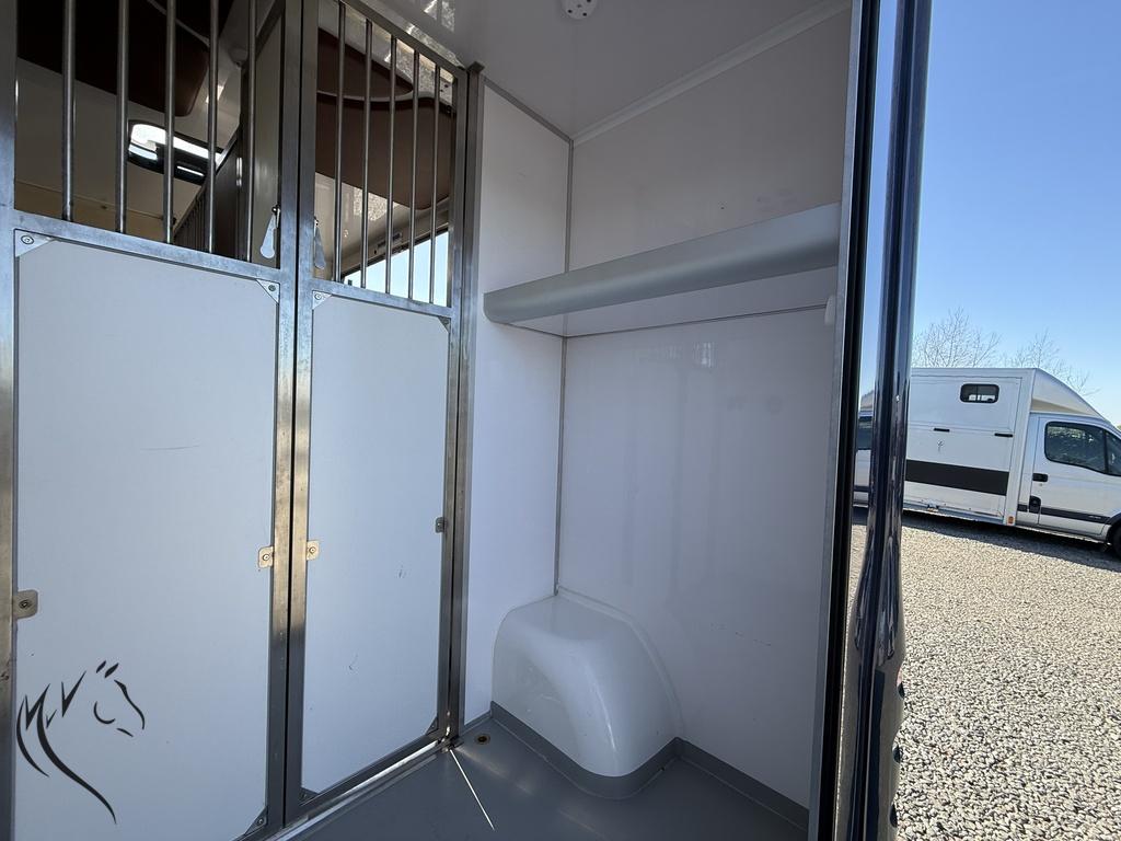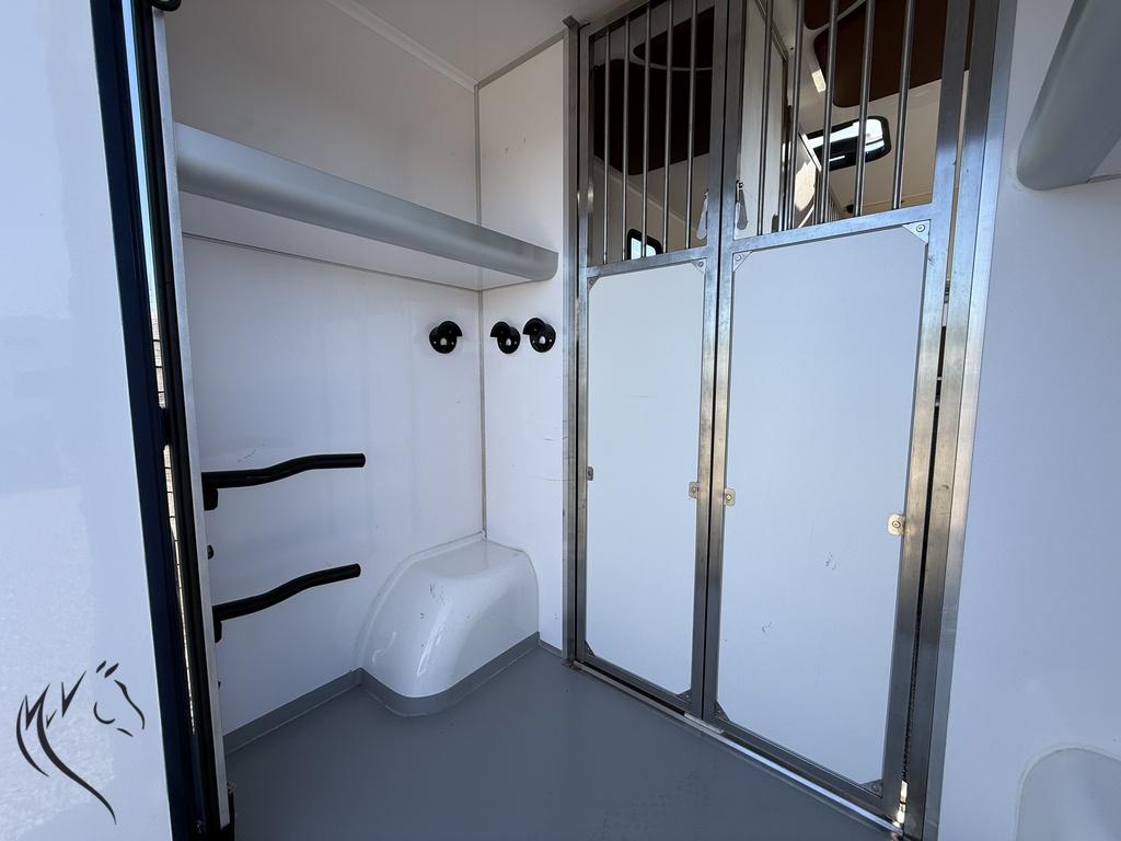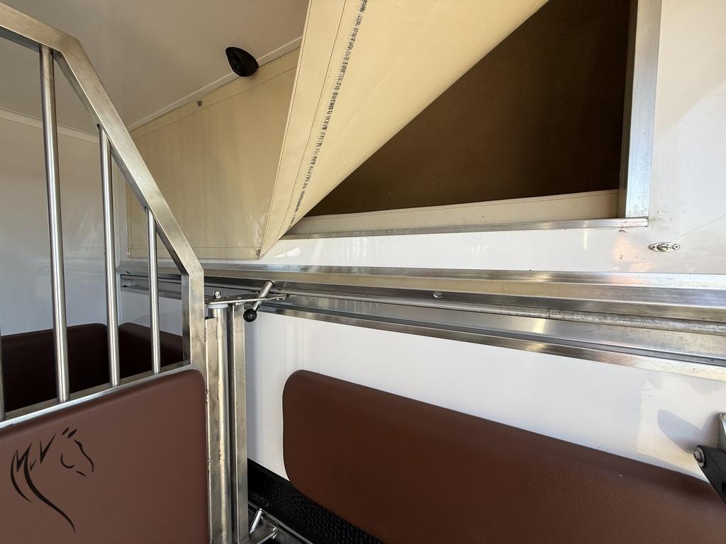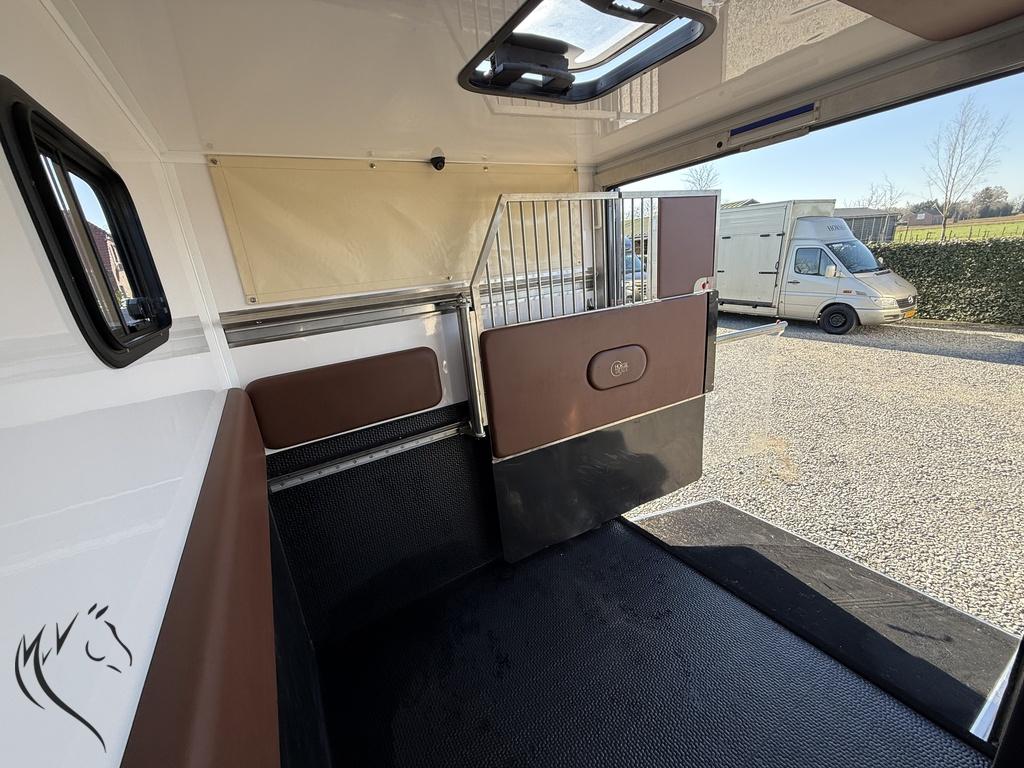 De wagen is voorzien van alle benodigde voorzieningen voor zowel het paard als de bestuurder, inclusief camera’s voor extra veiligheid en airco voor een aangename rijervaring. De ruime paardenruimte biedt voldoende comfort voor je paard, met een stevig tussenschot en goede ventilatie.