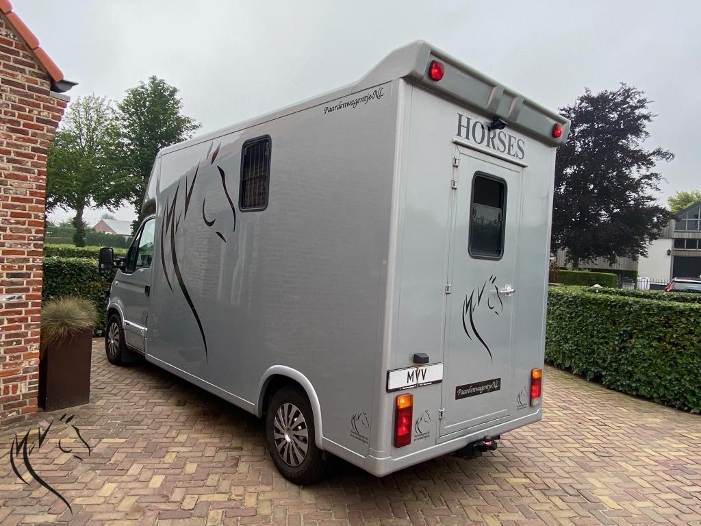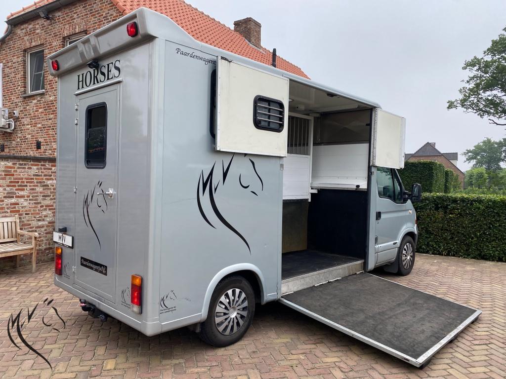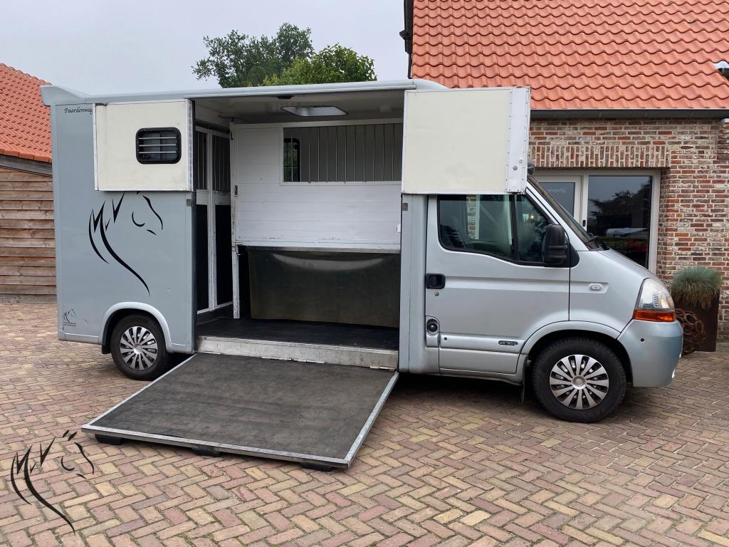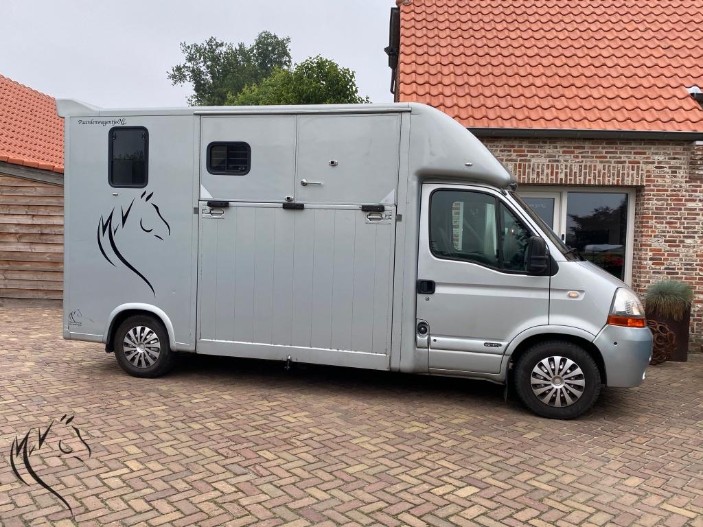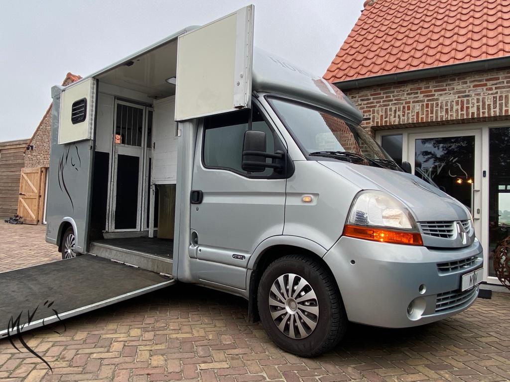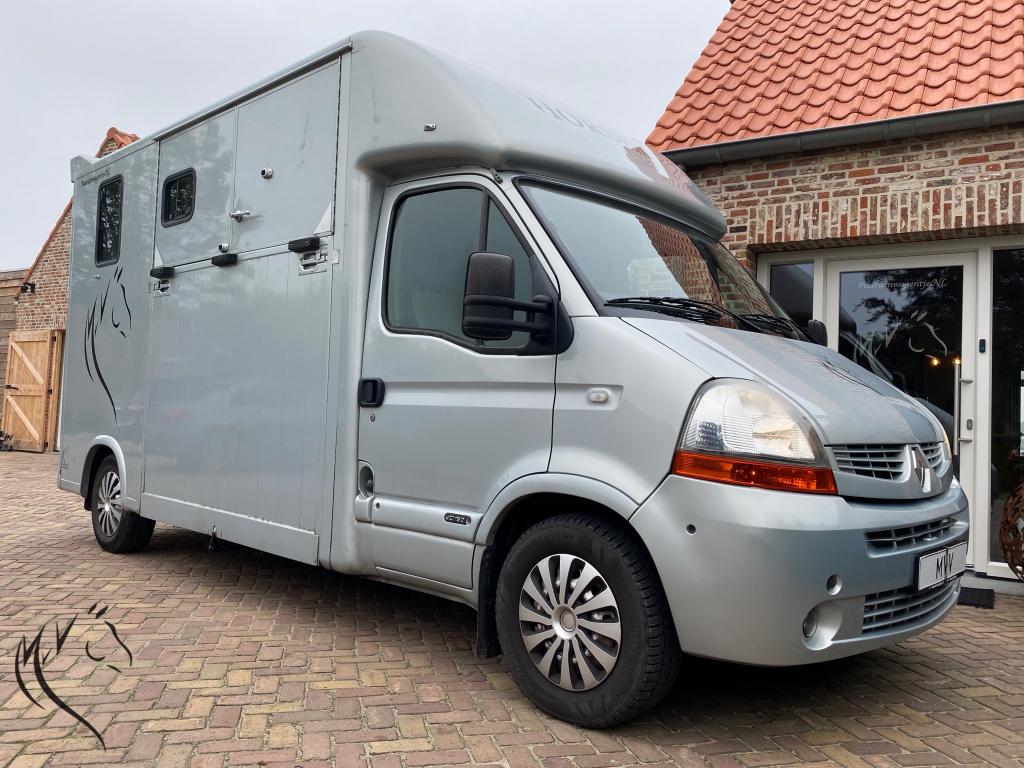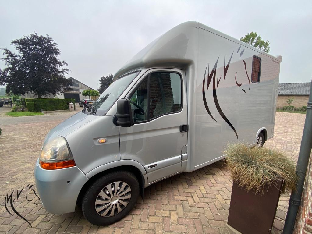 Zilver grijs metallic Renault Master 2.5L hengstenuitvoering uit 2008 met Mtm look opbouw. De wagen heeft 211.000km en 150pk met onder andere cruise control, camera bij de paarden en achteruit rij camera en airco.