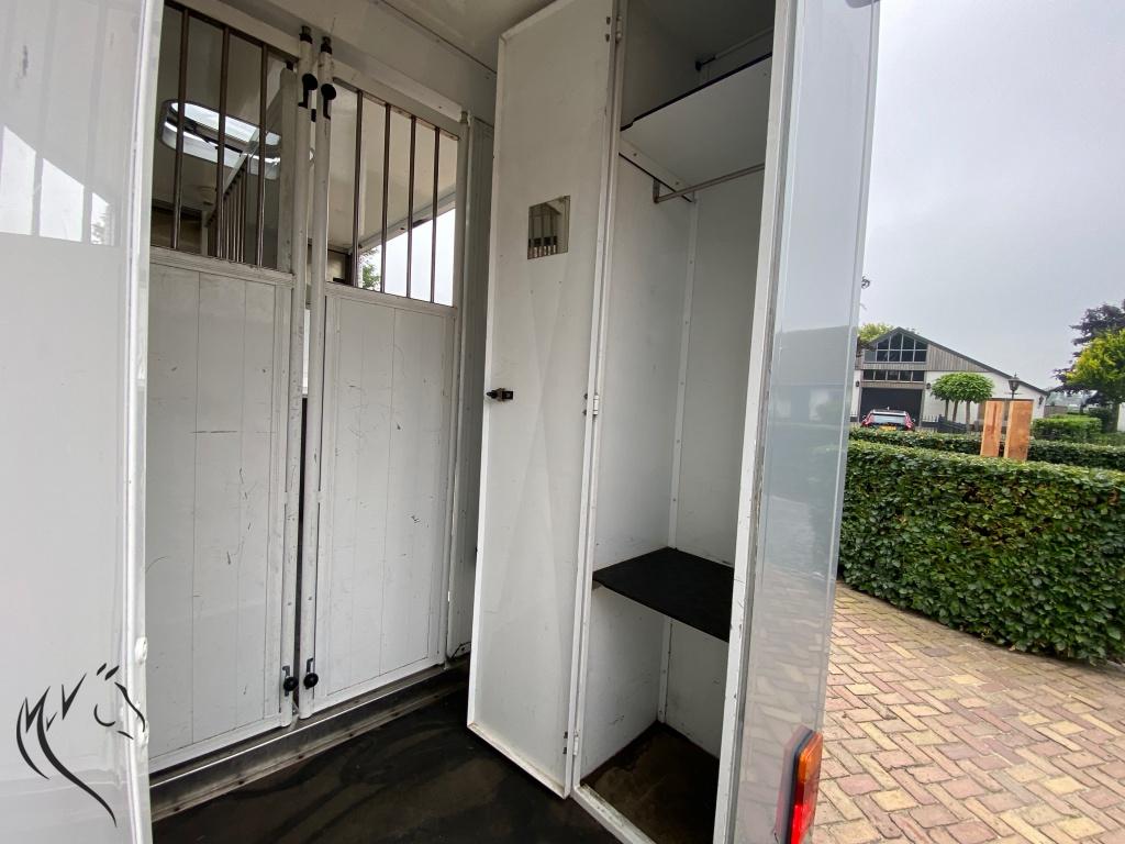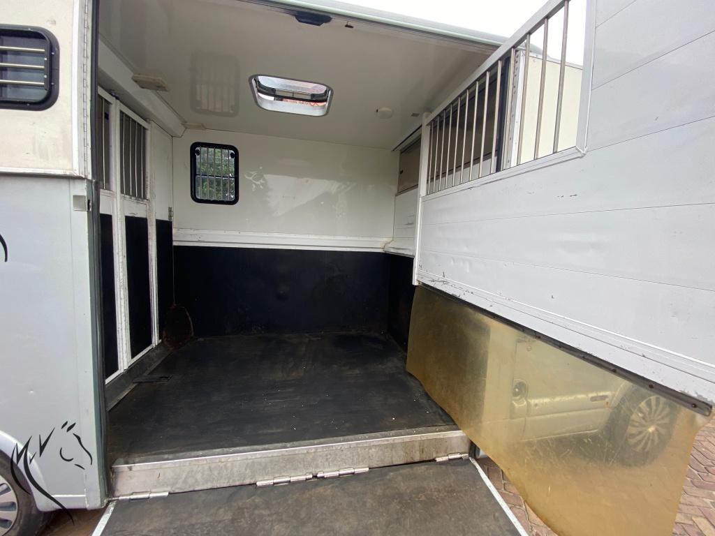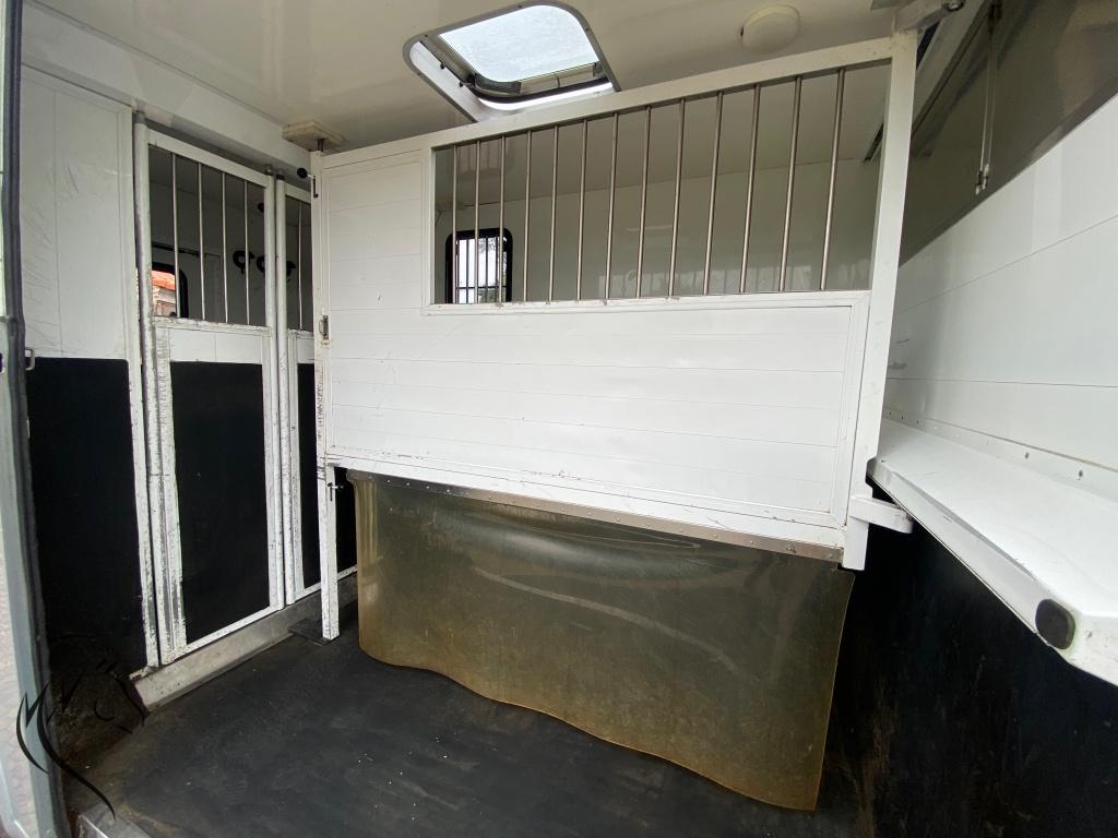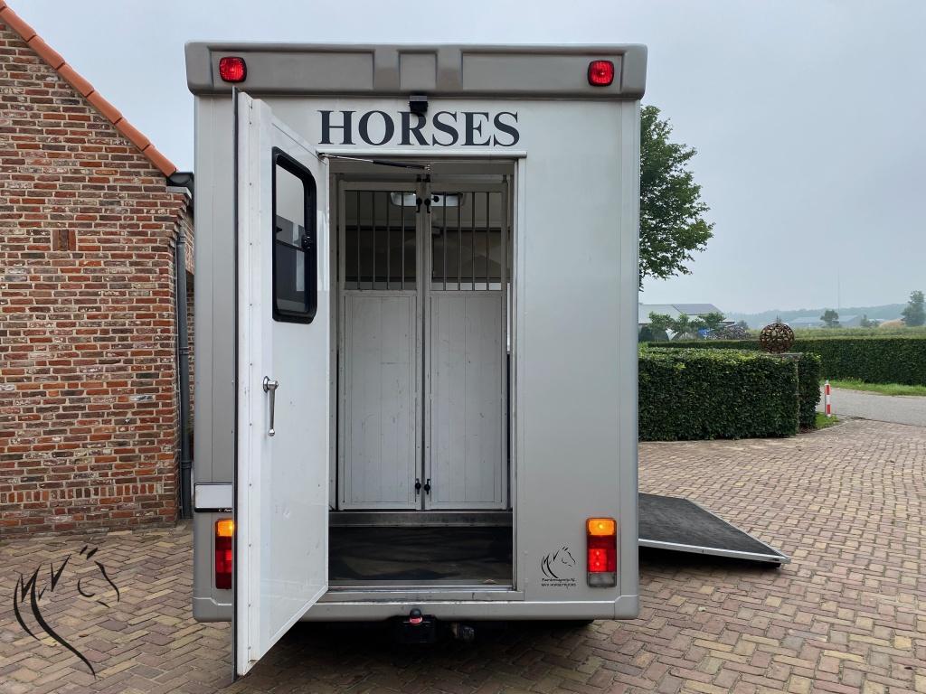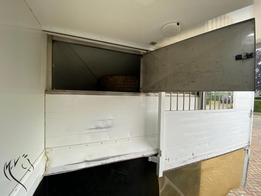 Onlangs grote beurt gehad en technisch in goede staat. Paardengedeelte is enorm veilig met “hengsten kooien”, berging boven de cabine, verschuifbaar hoog tussenschot. Achterin de wagen aparte zadelkamer met een zitbank, lange opbergkast, zadelsteunen en haken voor het hoofdstel. Verder heeft de paardenauto een trekhaak, lichte gespleten brede zijklep met bovendeuren. Wagen heeft NL kenteken dus u kunt deze meteen rijden, wij kunnen hier op locatie te naamstellen. Papieren op Duits of Belgisch kenteken registreren behoort tot de mogelijkheden tegen meerprijs.