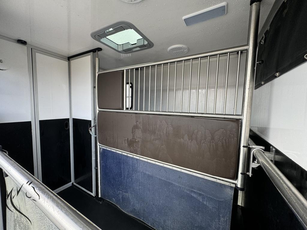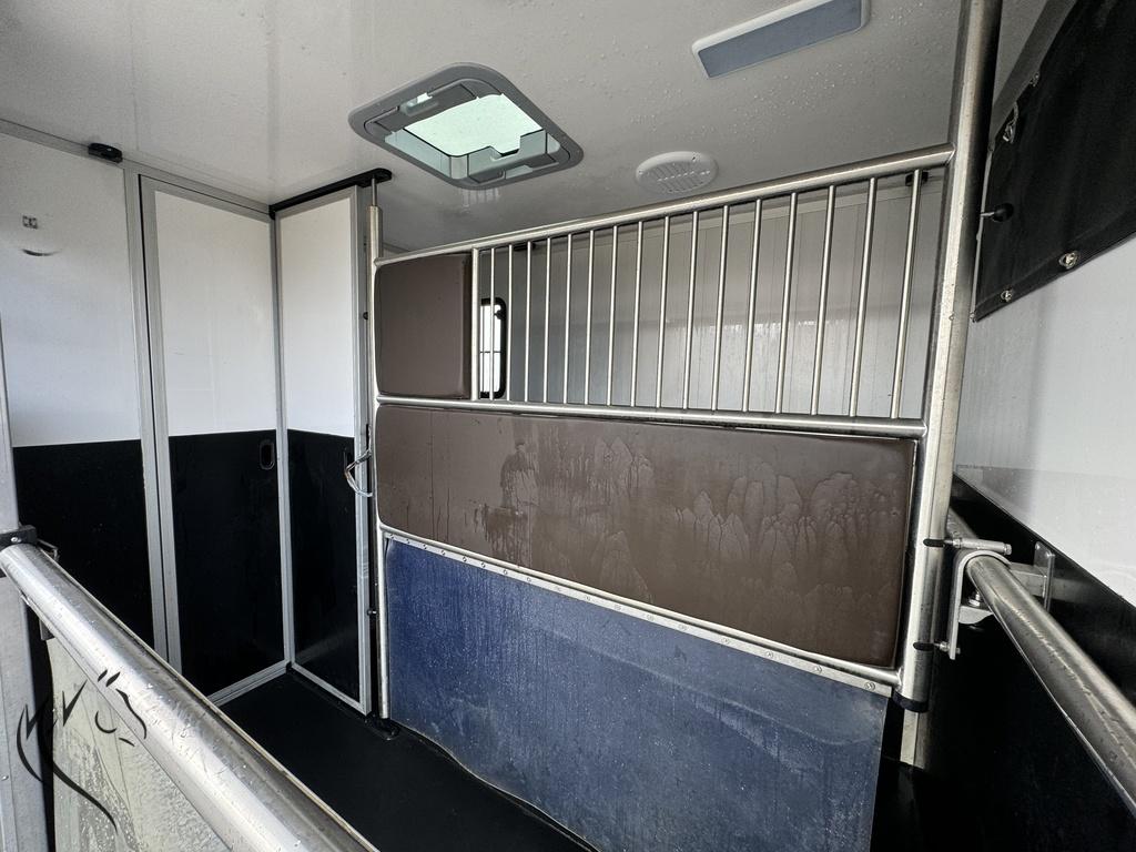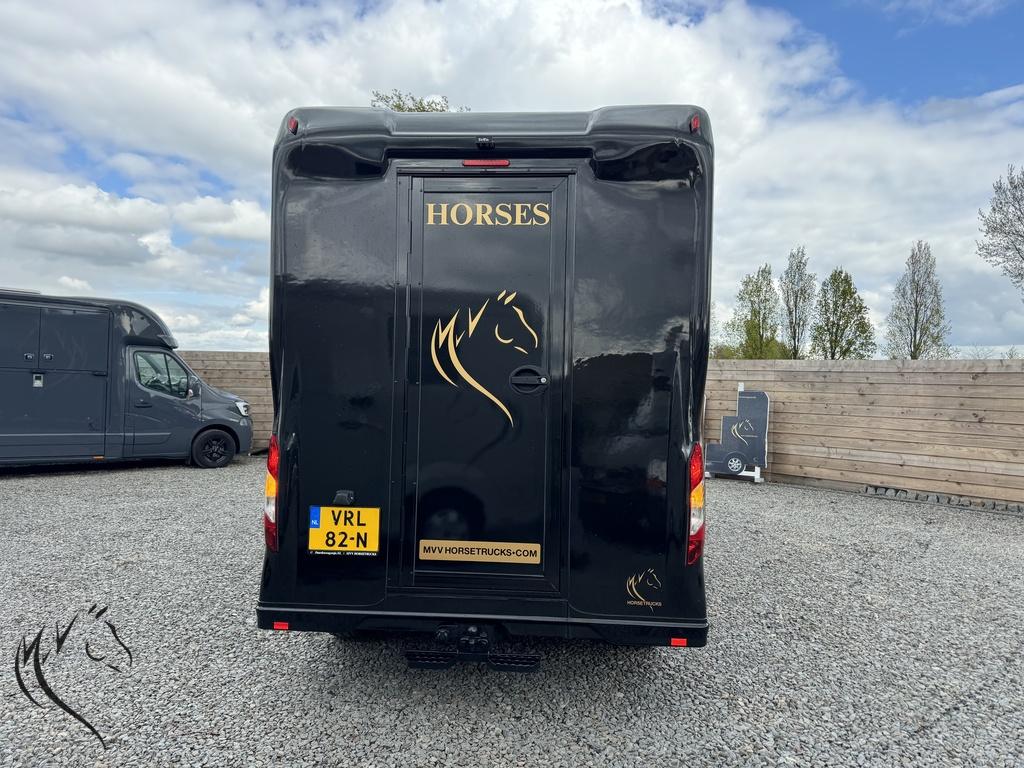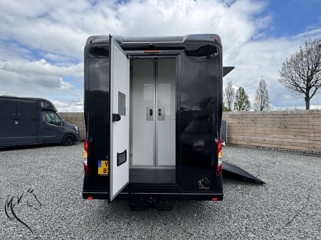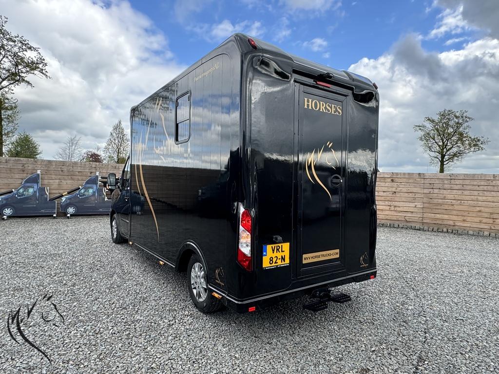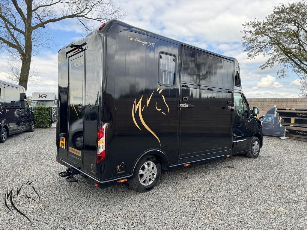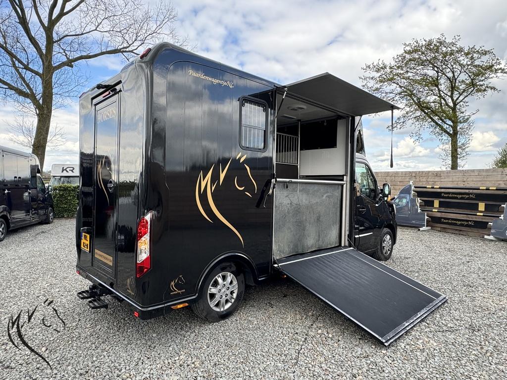 Prachtige zwarte jong gebruikte Renault Master paardenwagen van het merk Sodiak uit 2022 met 34.000km. De paardenauto met aluminium panelen opbouw is ingericht met een stallion lay-out, is zeer goed onderhouden met 3 zitplaatsen, enkele cabine, airco, radio, cruisecontrol, navigatie, mistlampen, camera bij de paarden en achteruit rij camera. Verder heeft deze wagen 180 pk, is deze handgeschakeld, heeft deze een trekhaak en zo goed als nieuwe zomer banden met licht metalen velgen. Achterin de wagen is de zadelkamer met plaats voor de zadels en het overige tuig, een zitbank, wit licht en blauw licht, 2 ventilators, buitenstang 2e paard met mat en diverse raampartijen, korte lichte zijklep met boven topklep. Verstelbaar rvs tussenschot met zwarte stootkussens en berging boven de cabine. De bodem is veilig van metaal met daarover een dikke rubberen mat. Wagen heeft een Nederlands kenteken.Belgische of Duitse papieren is tegen meerprijs mogelijk. Keurig nette paardenwagen waar mooi en veilig mee voor de dag komt. Ready to go.